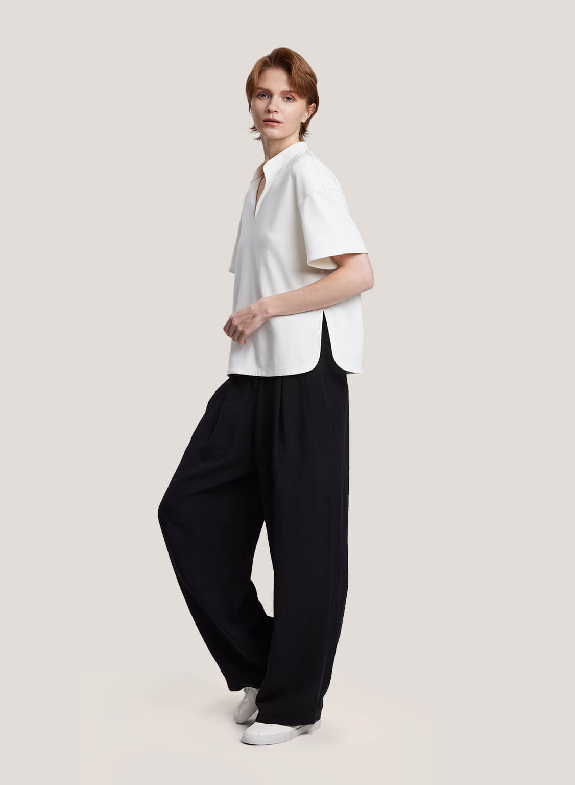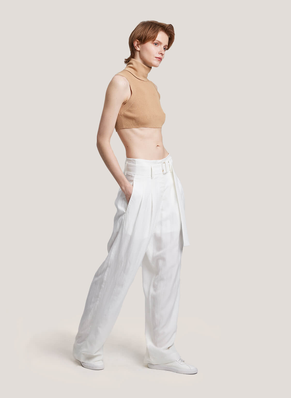This type of cool and classic effortless pants is perfect for any look featuring a mid-rise, relaxed-fitting silhouette. You can pair it with a fitted turtleneck and sneakers to reach cool-girl status.