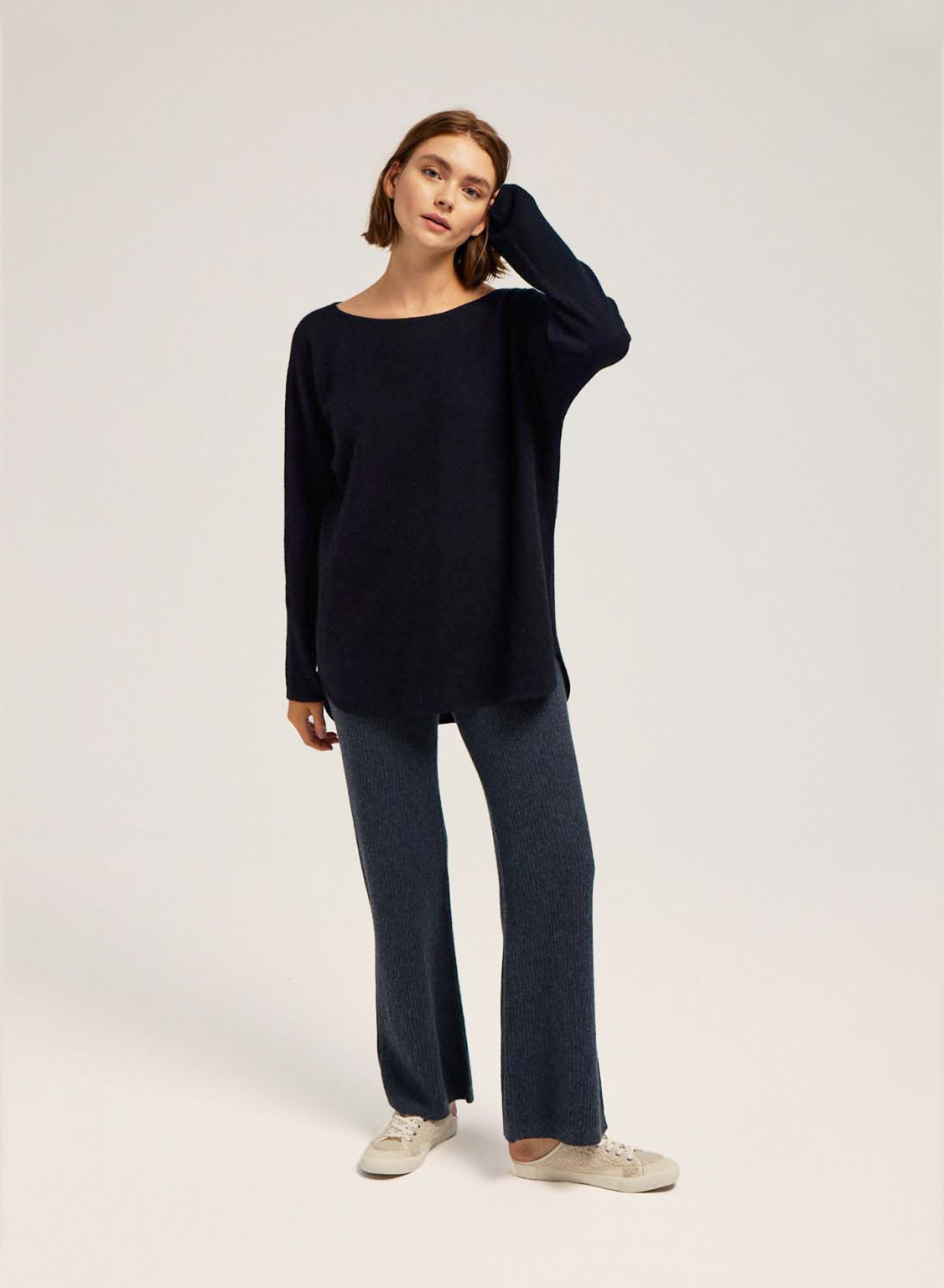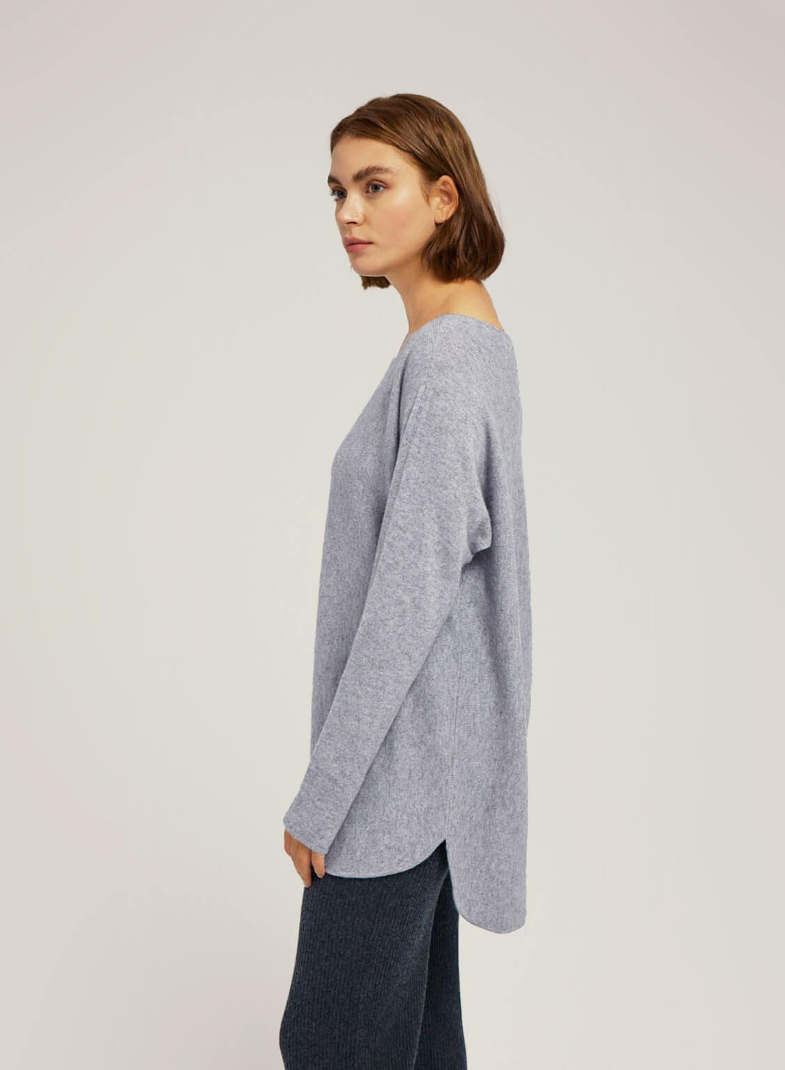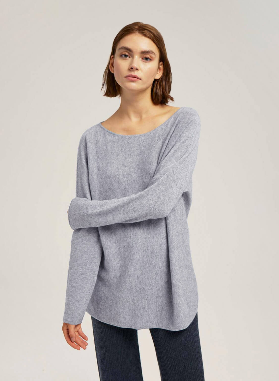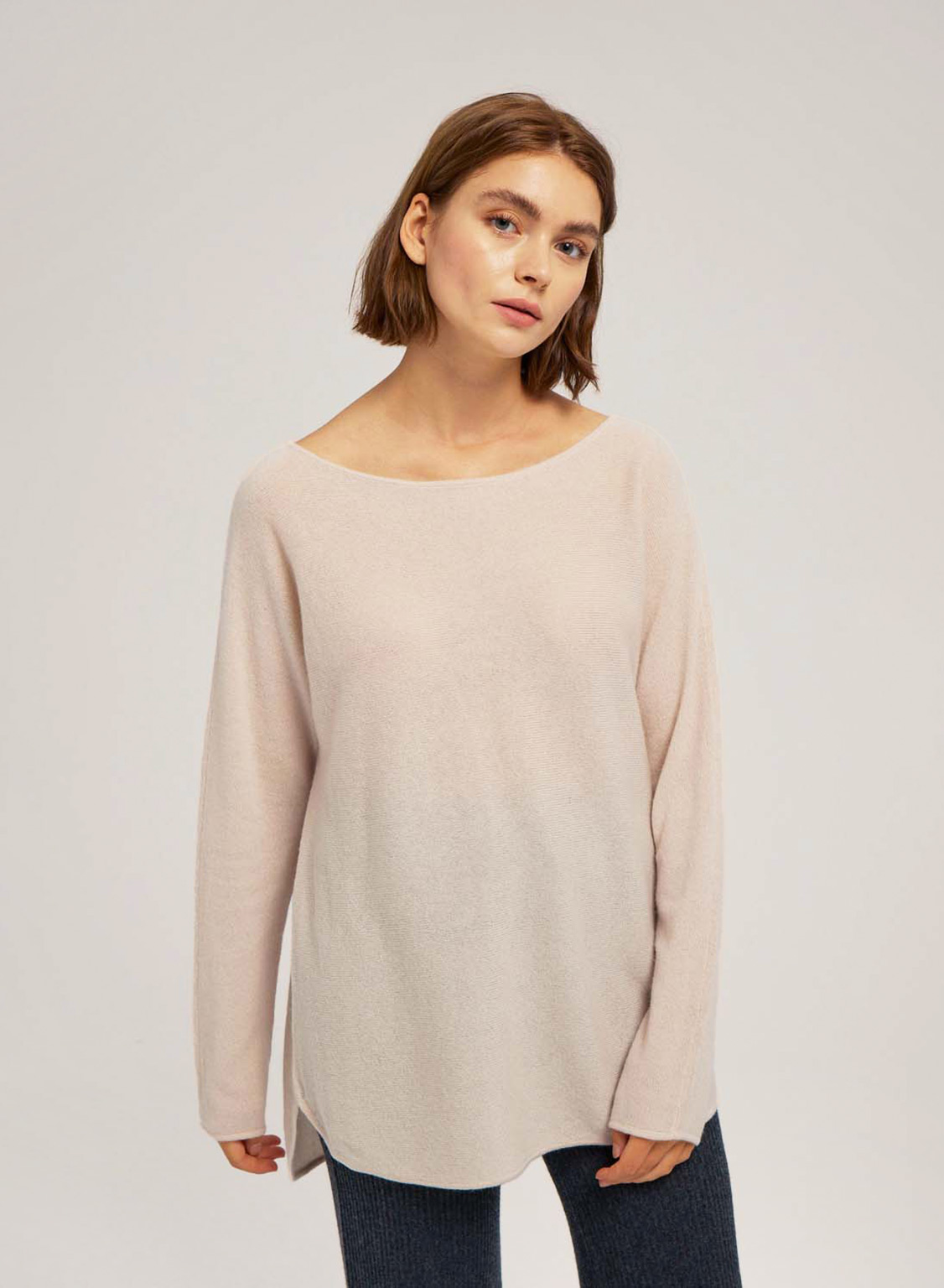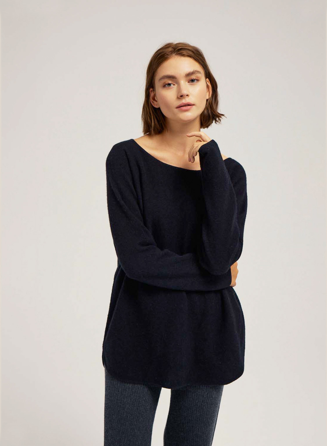 Feel the softness of this fine-knit boat neck sweater, ideal for everyday wear.