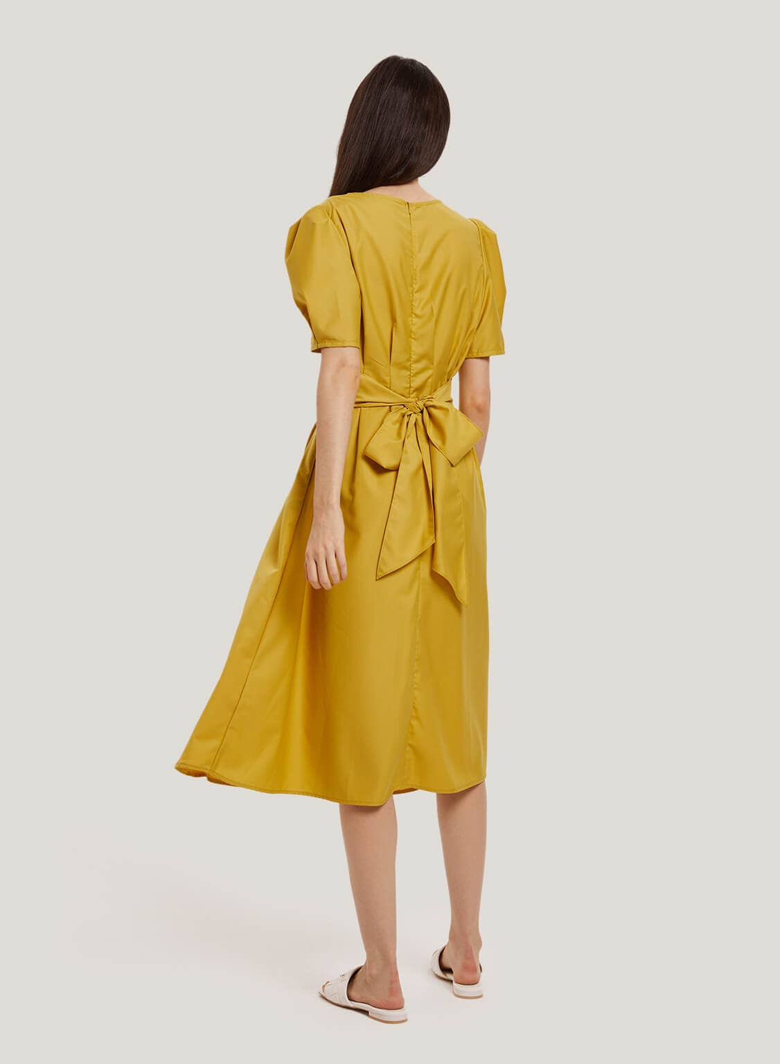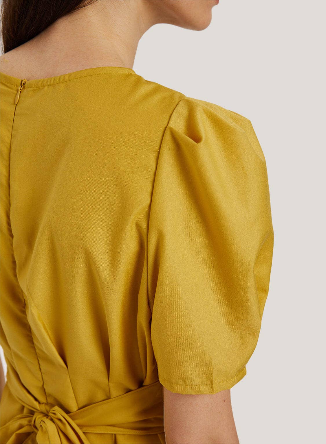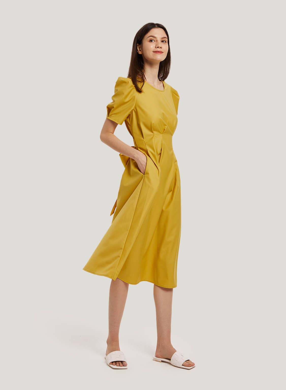 So hot right now! Designed with on-trend puff sleeves and a cinched belted waist, this dress is definitely fashion-forward.