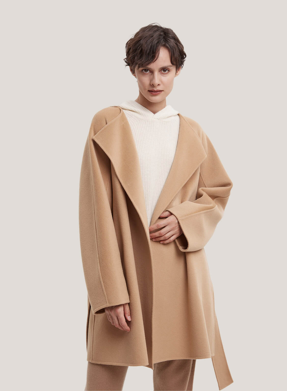 This longline-style coat pairs with a practical belt is an easy-to-wear piece that is luxuriantly cozy inside and out. Warp on your shape with the languid ease which comes with the finest of a wool-cashmere, comfort, and softness, which will accompany you in the best way. This trendy outwear is classic with a contemporary design this season that deserves a spot in your wardrobe.