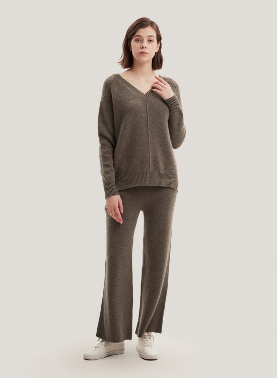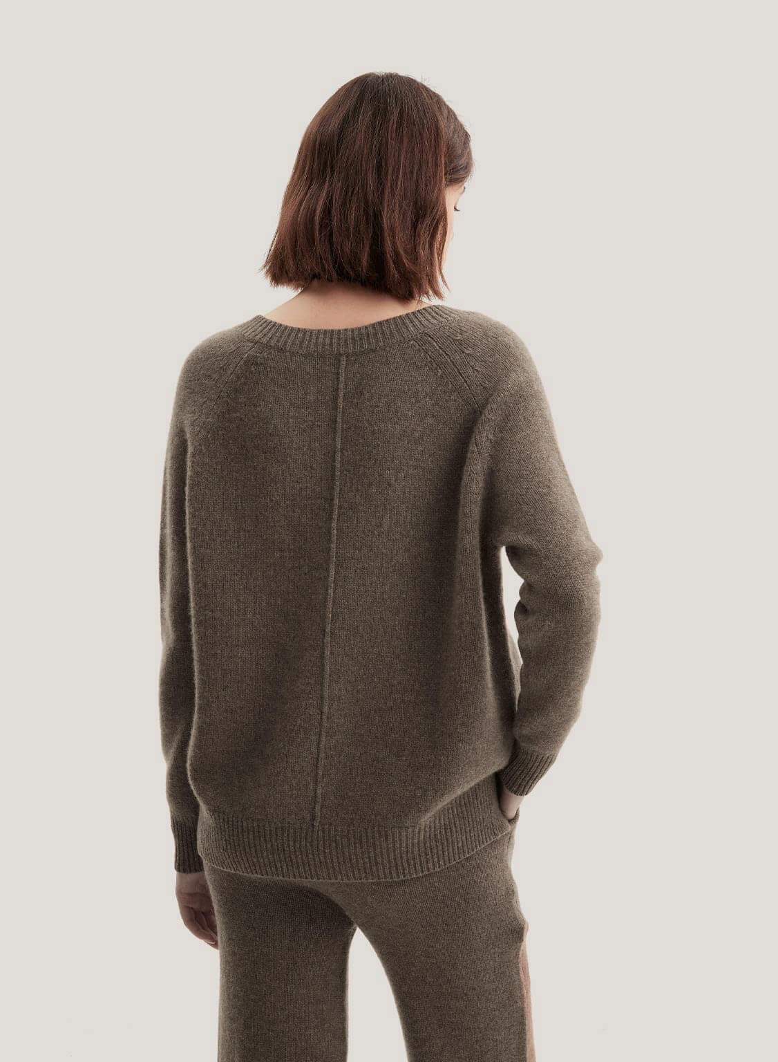 This sophisticated jumper in natural hues and has refined details. It is cut with a classic V-neck collar and ribbed trim to keep you even more comfortable.