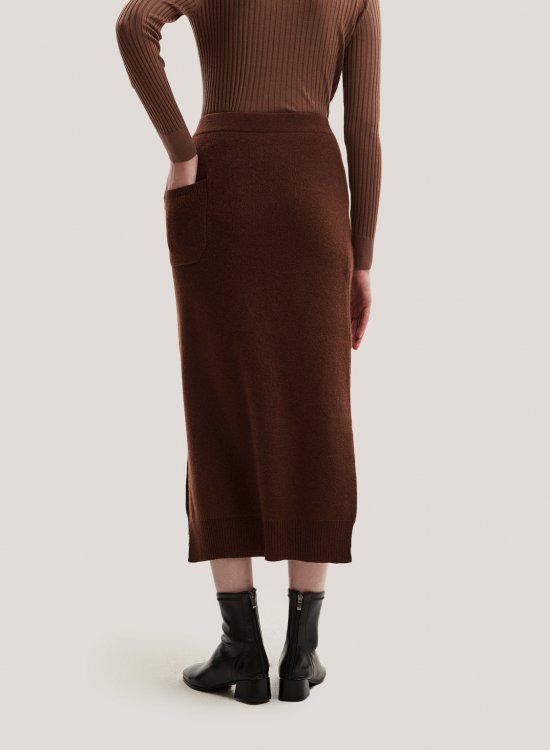 This skirt is comfortable yet sophisticated. It's the best option for cold weather dressing from a blend of wool and yak. Pair it with a basic top to emulate the model's look.