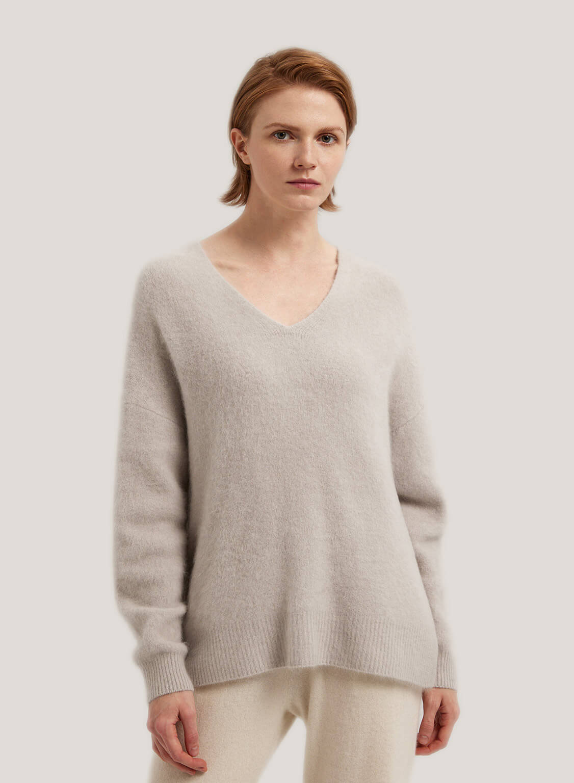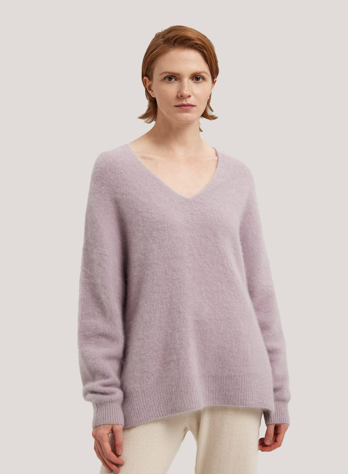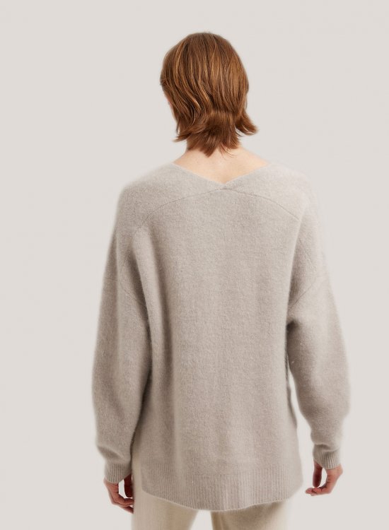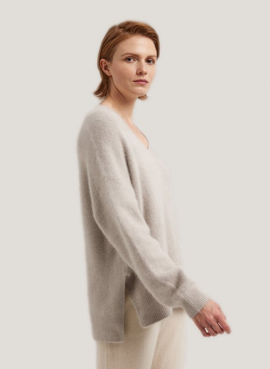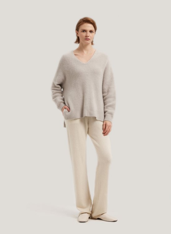 A polished look with a cozy feel. Featuring a v-neckline and split hem detail, this sweater pairs well with a pair of joggers or trousers.