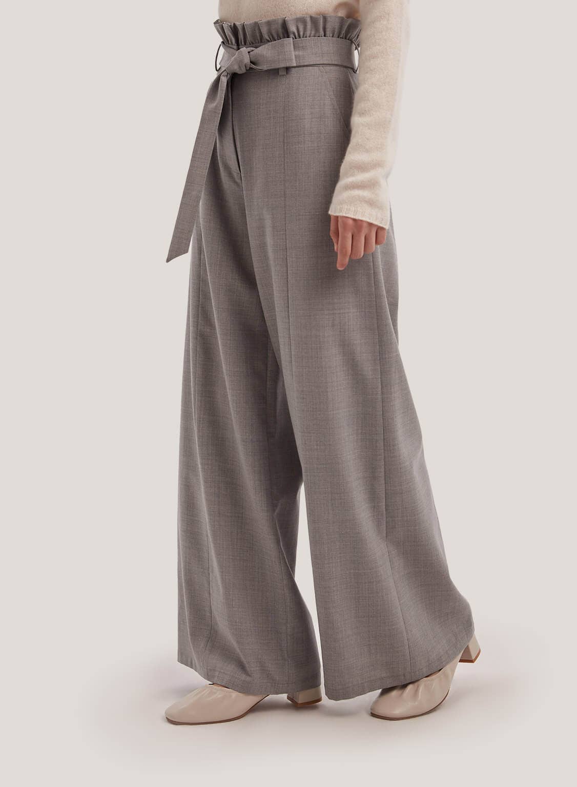 Belted Wide-Leg Wool-Blend Pants