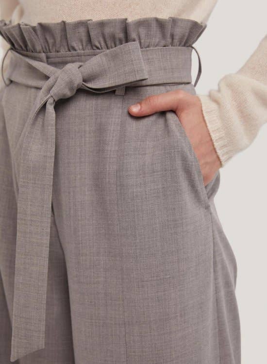 These trousers combine elements of smart tailoring and practical styles. The wide legs enhance the elongating look of these structured trousers, while a belt draws attention to the high waist.