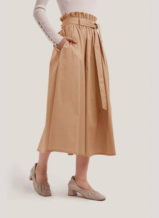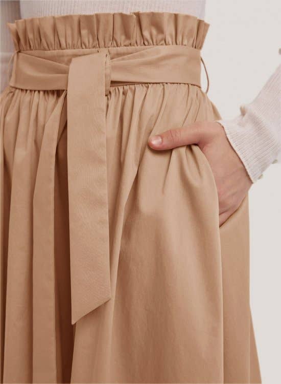 This cotton-blend skirt has a paper bag waist which adds usefulness to the ventilated long silhouette. Keep the details prominent by combining yours with a simple white top.