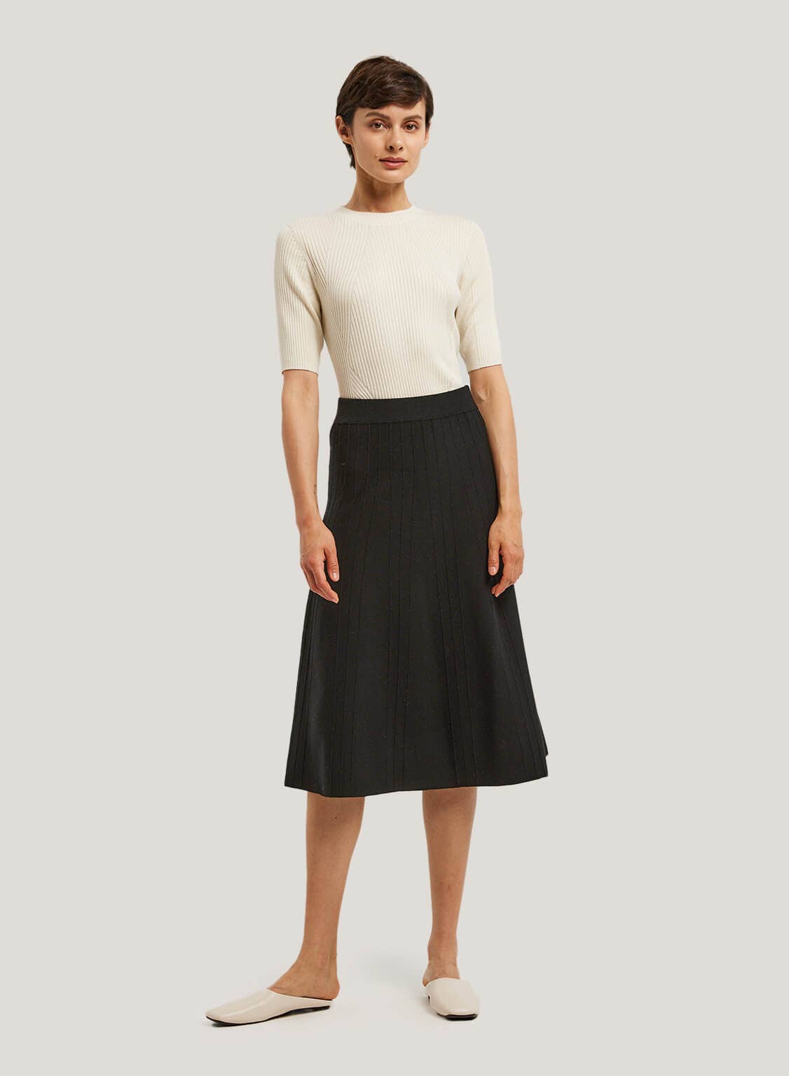 A skirt that everyone needs. With slight pleat detail and midi length, this skirt elevates any outfit.