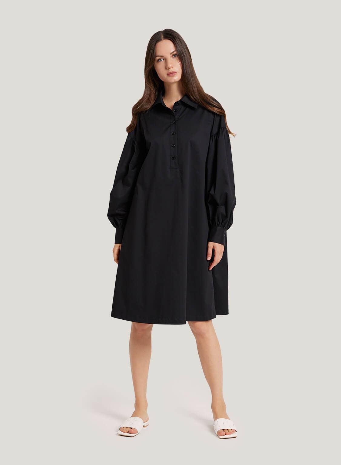 This dress is a must-have of summer such as can worn on a brunch date. Made from a cotton blend, It has signature puffed sleeves and an oversized silhouette with a button-down collar and dropped shoulders.