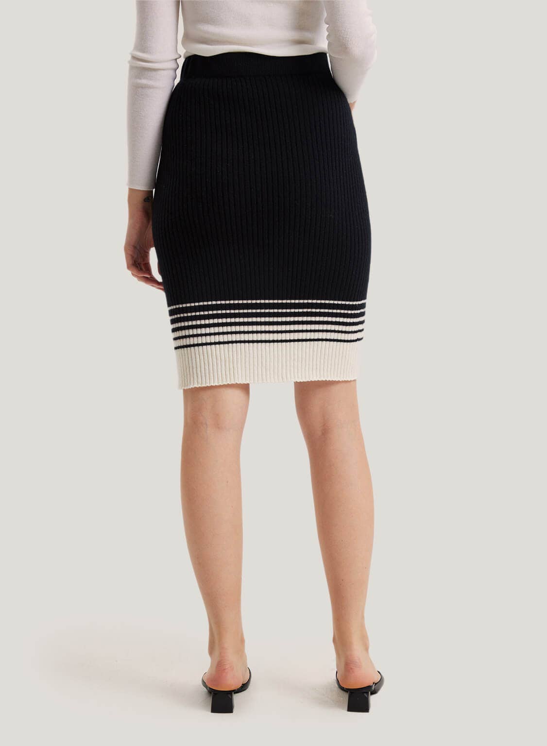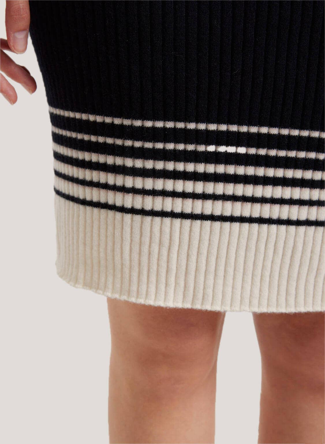 Design for the city street style, it the expertly made with a soft cashmere that ribbed to enhance your curves. And this horizontal striped knitted skirt cut in a slim fit, proving that a classic black and white style is always charming.