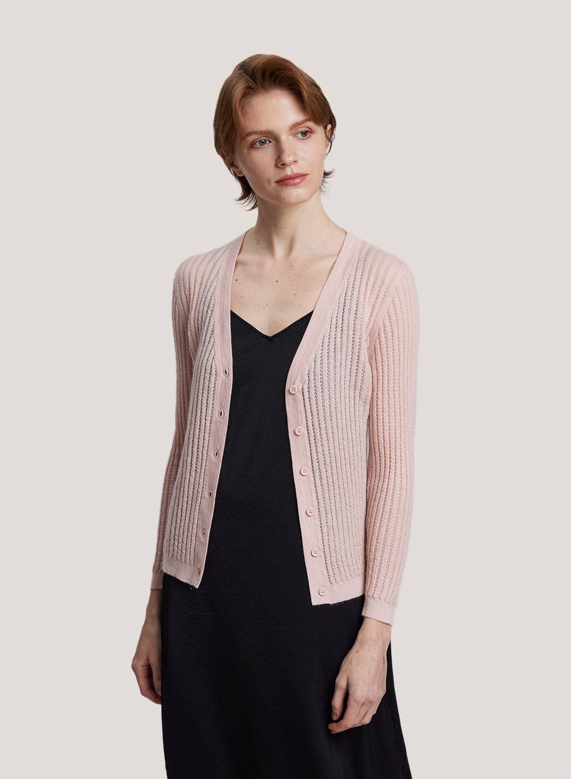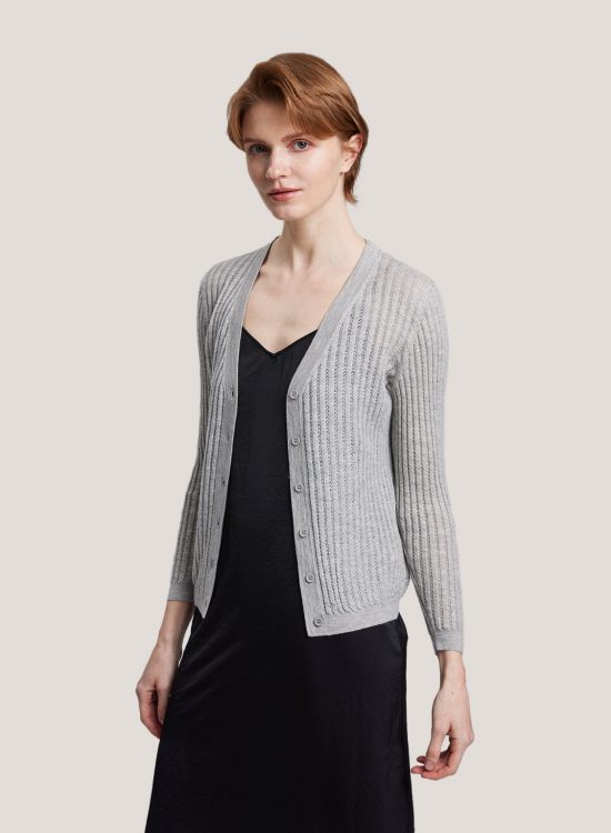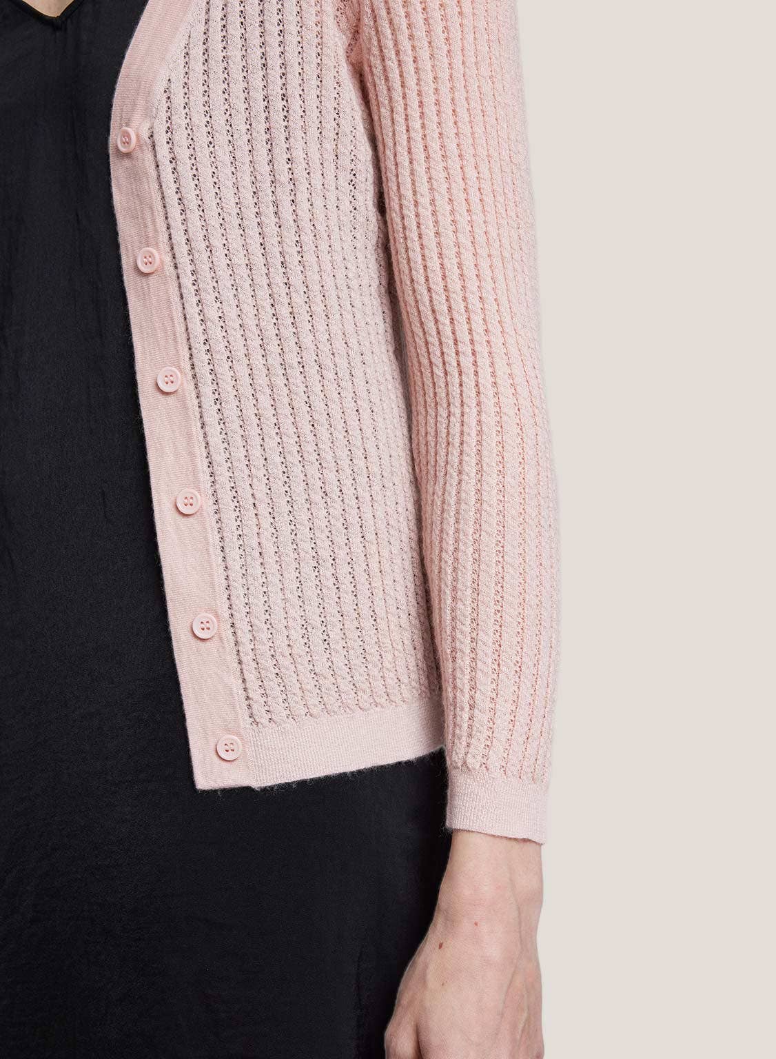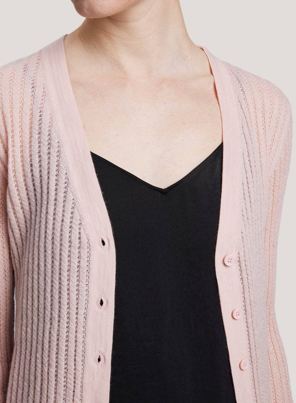 A lightweight layering piece. Designed with raglan long sleeves, knitted fit, and v-neckline, this cardigan is ready for springtime.