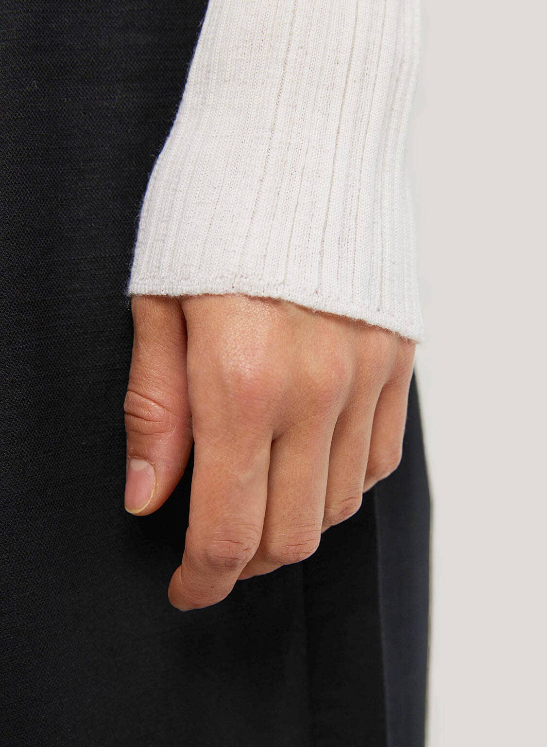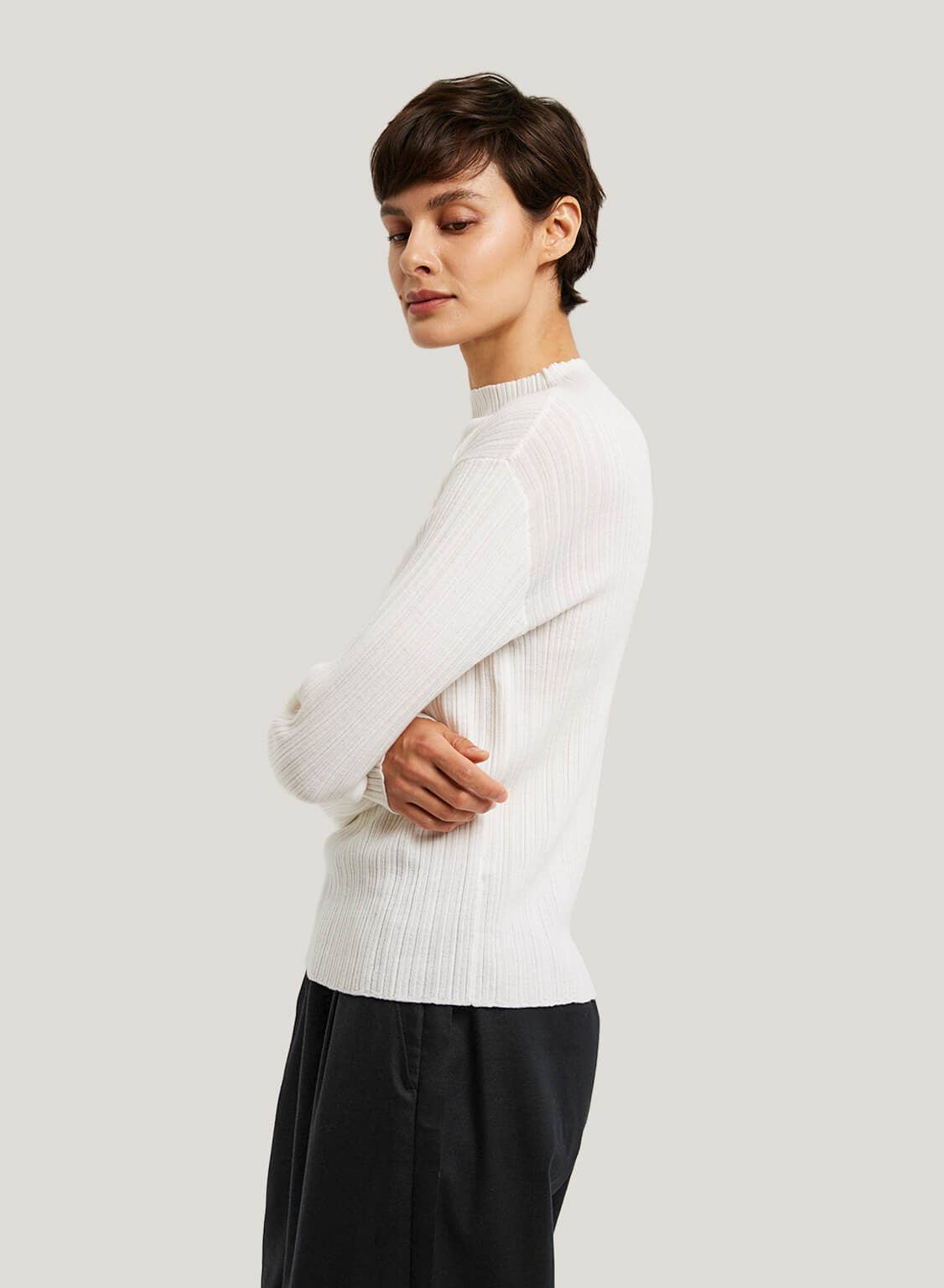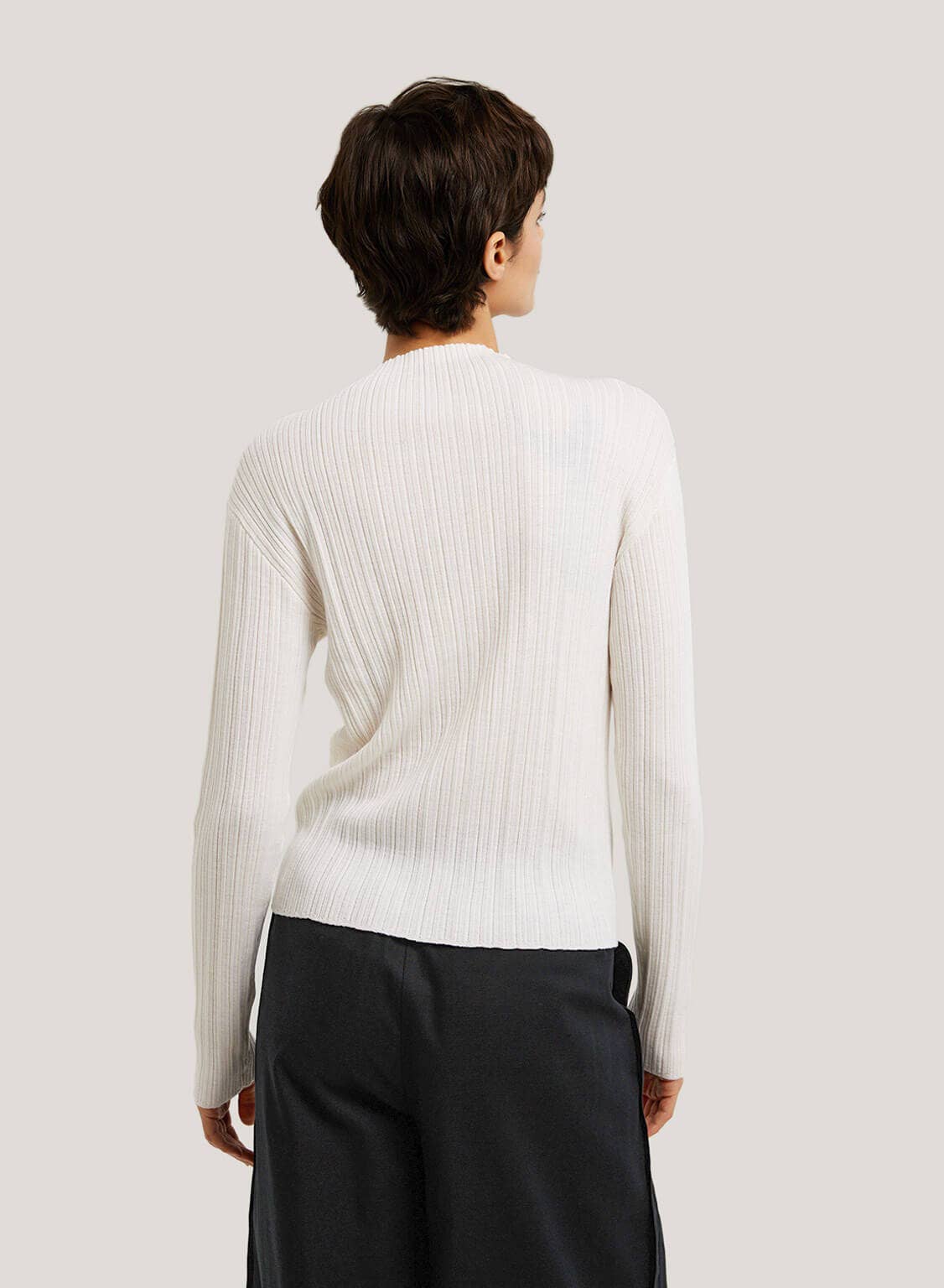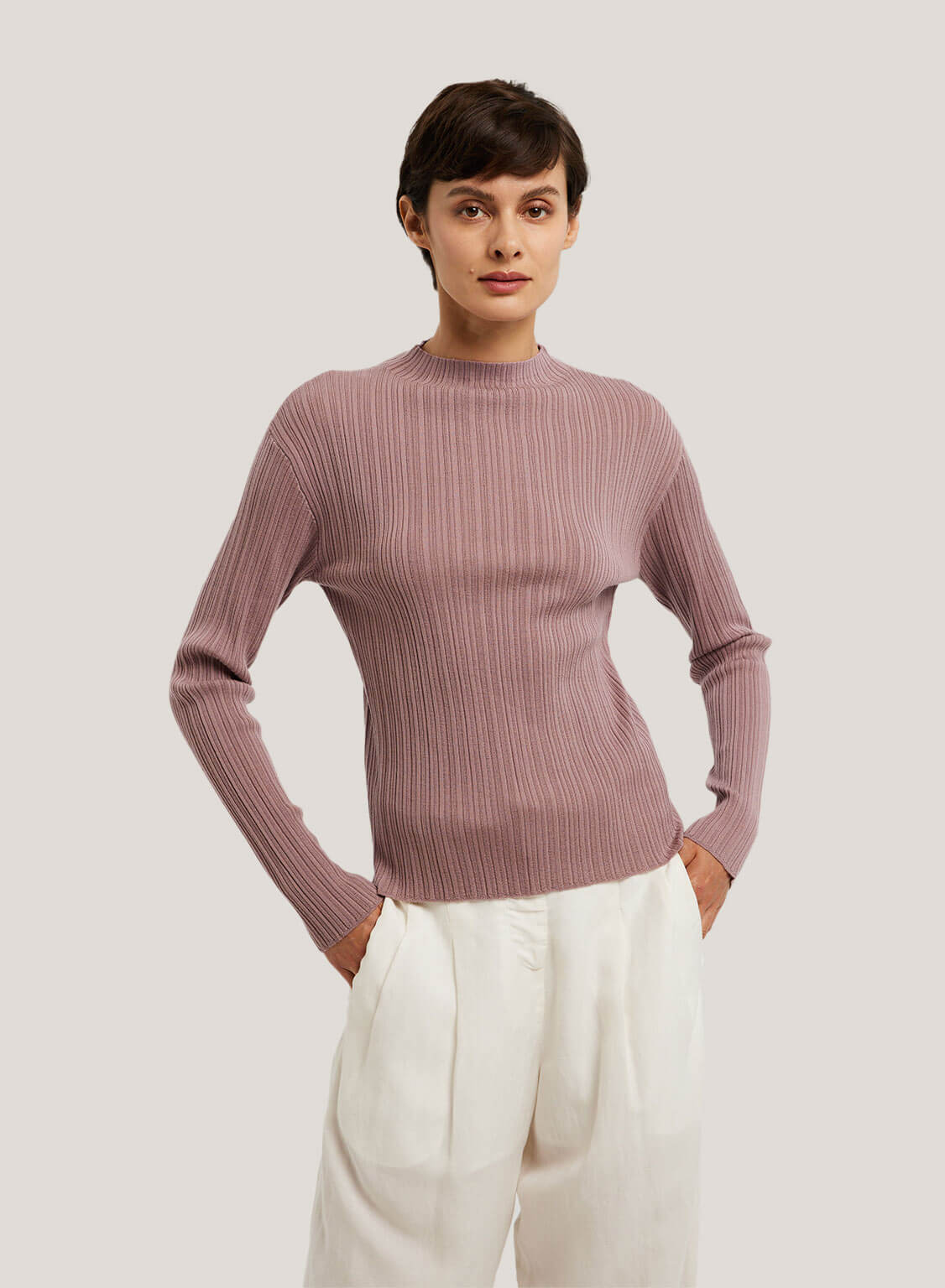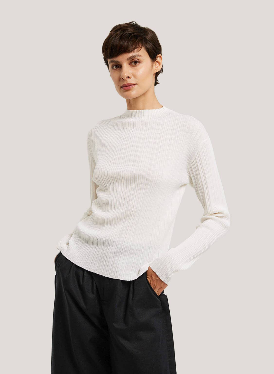 Modern and polished. Featuring a high neckline, raglan long sleeves, and ribbed detail, this top made from soft, breathable merino wool and has a slim fit.