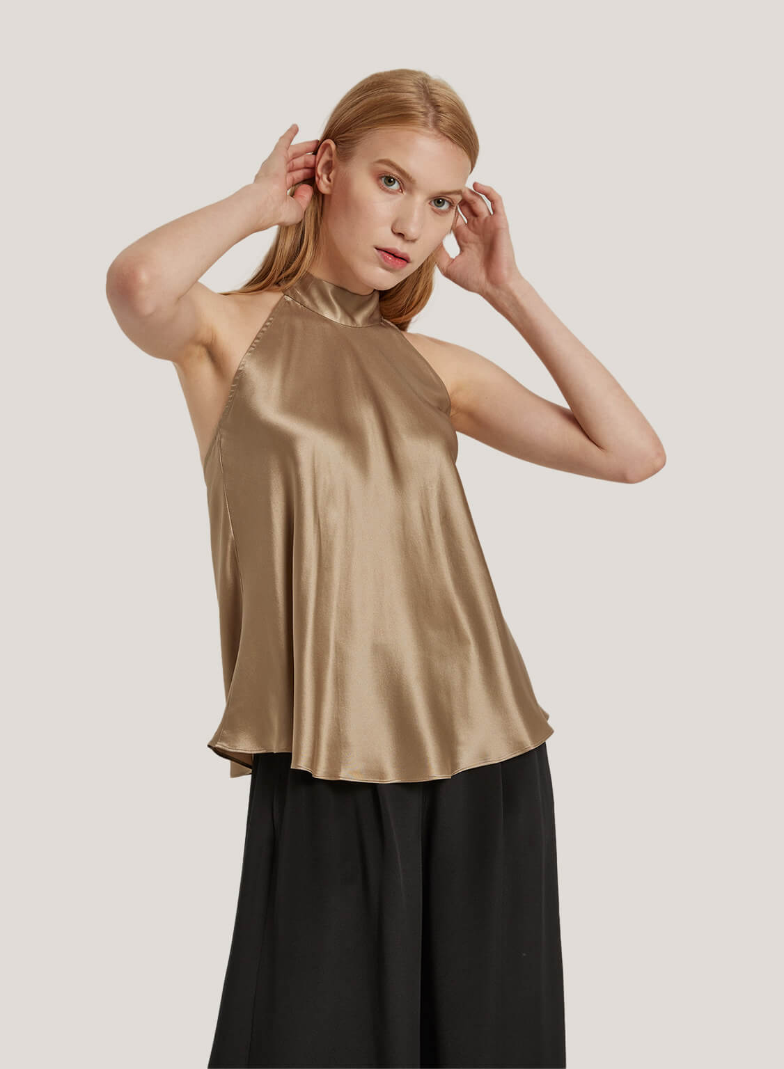 Pure Silk Sleeveless Halter Top