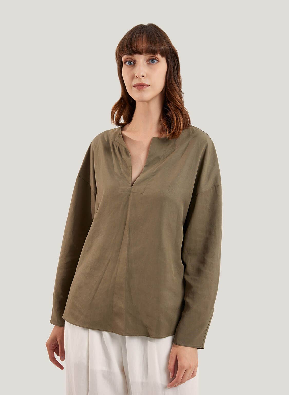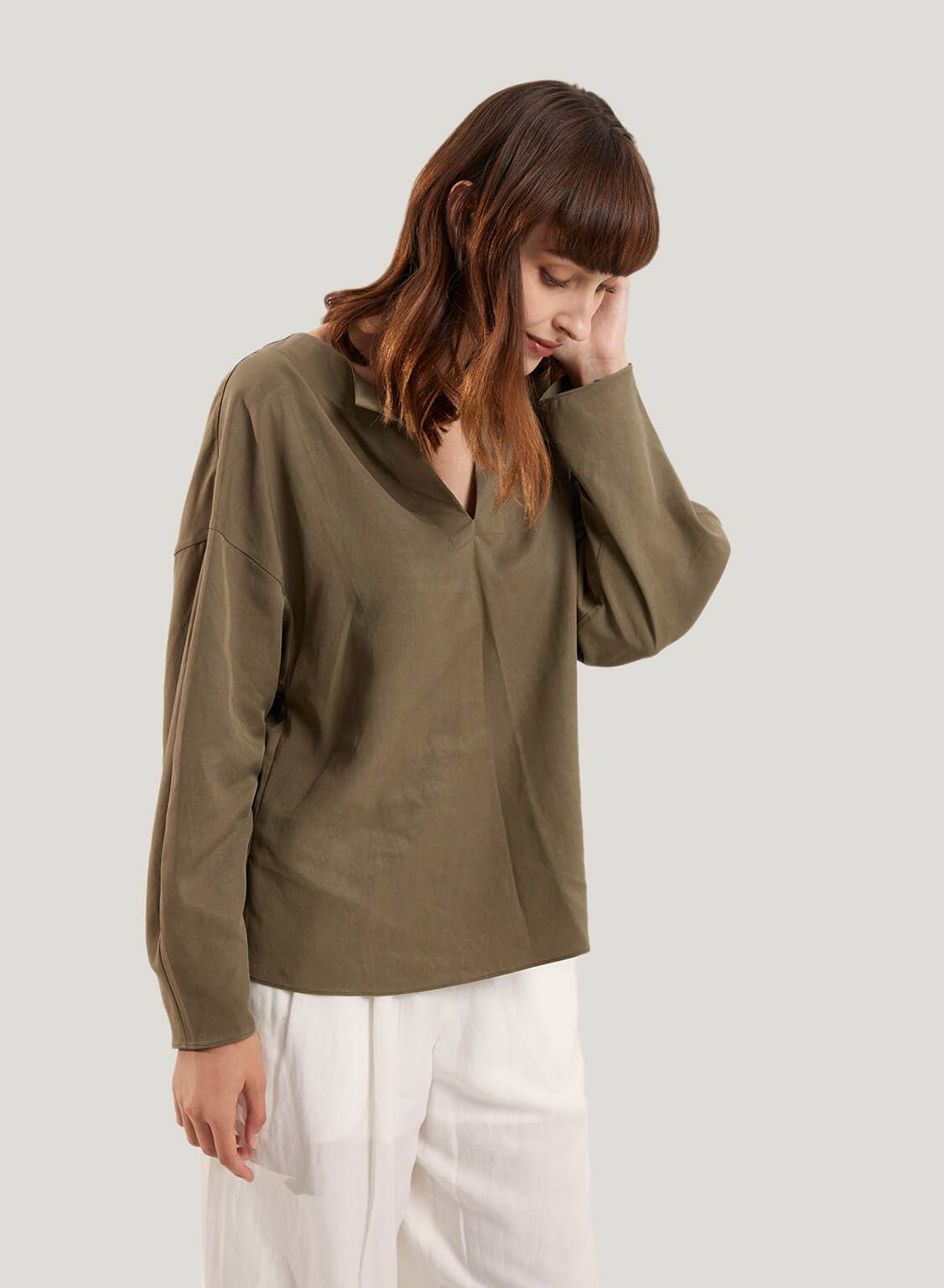 When textured organic flax knitted with soft organic cotton, something special occurs. A simple design adds effortless drape to this boxy blouse from a blend of linen and organic cotton. Fabrication with body, motion, and versatility.