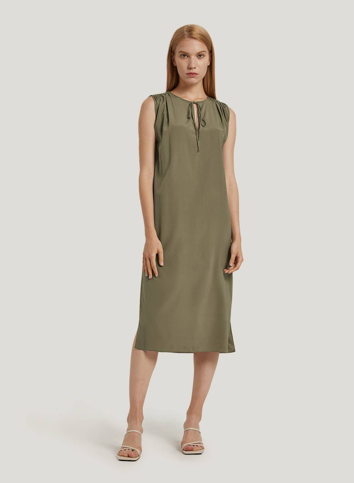 Proof that modest is the hottest. This dress is effortlessly elegant with a relaxed silhouette, sleeveless and beautiful in details.