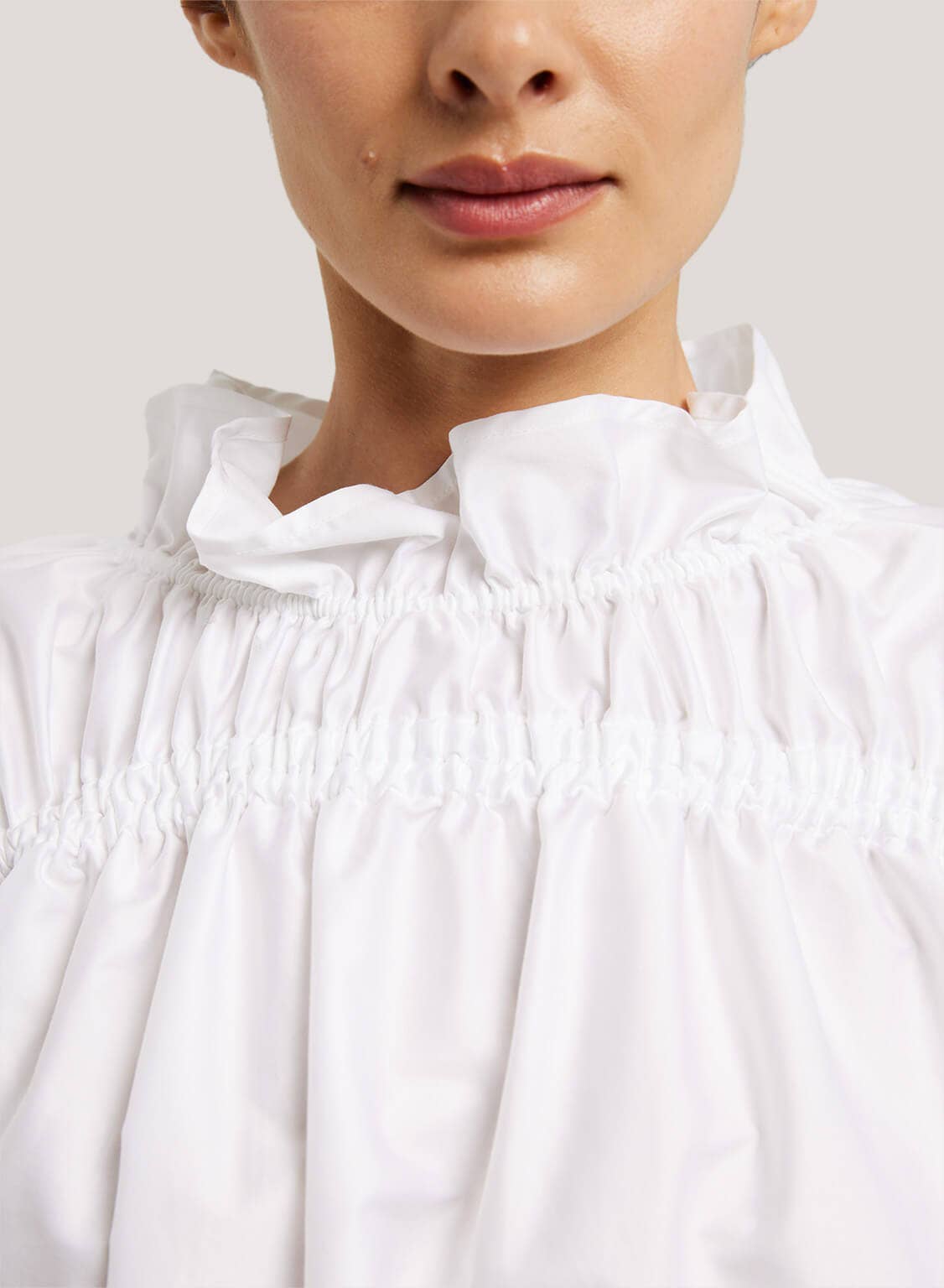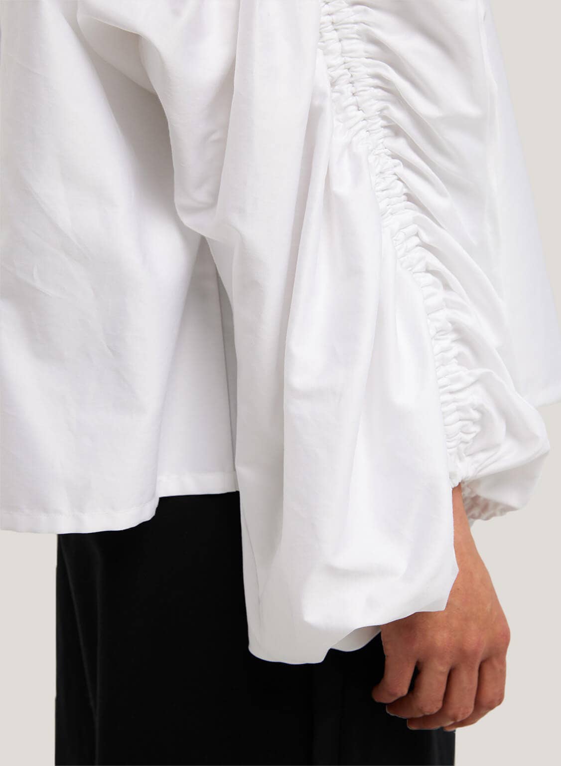 A top with beautiful ruched puff sleeves that go up to the neck, this top makes a statement for sure. Consider pairing it with relaxing jeans for laid-back occasions.