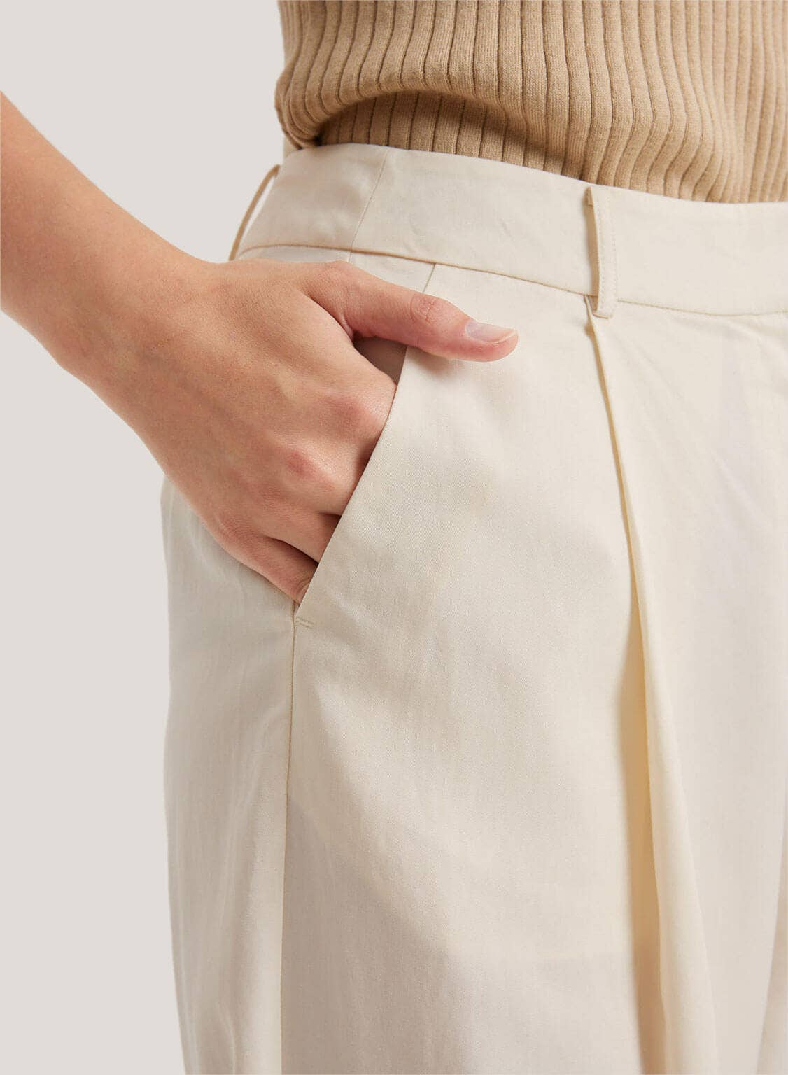 Prepare for the spring-summer season with our versatile and stylish pants. The pants cut from a blend of organic cotton and linen. With an elegant and relaxed straight cut and pleats on the front giving ultimate comfort and style.