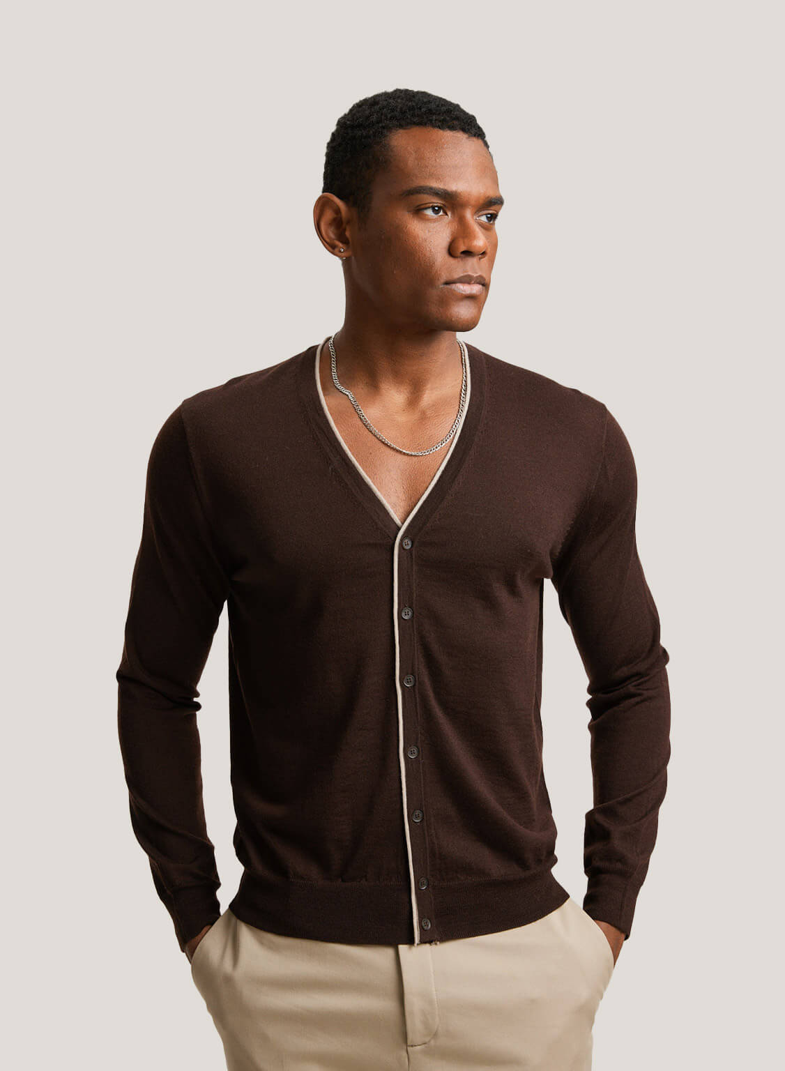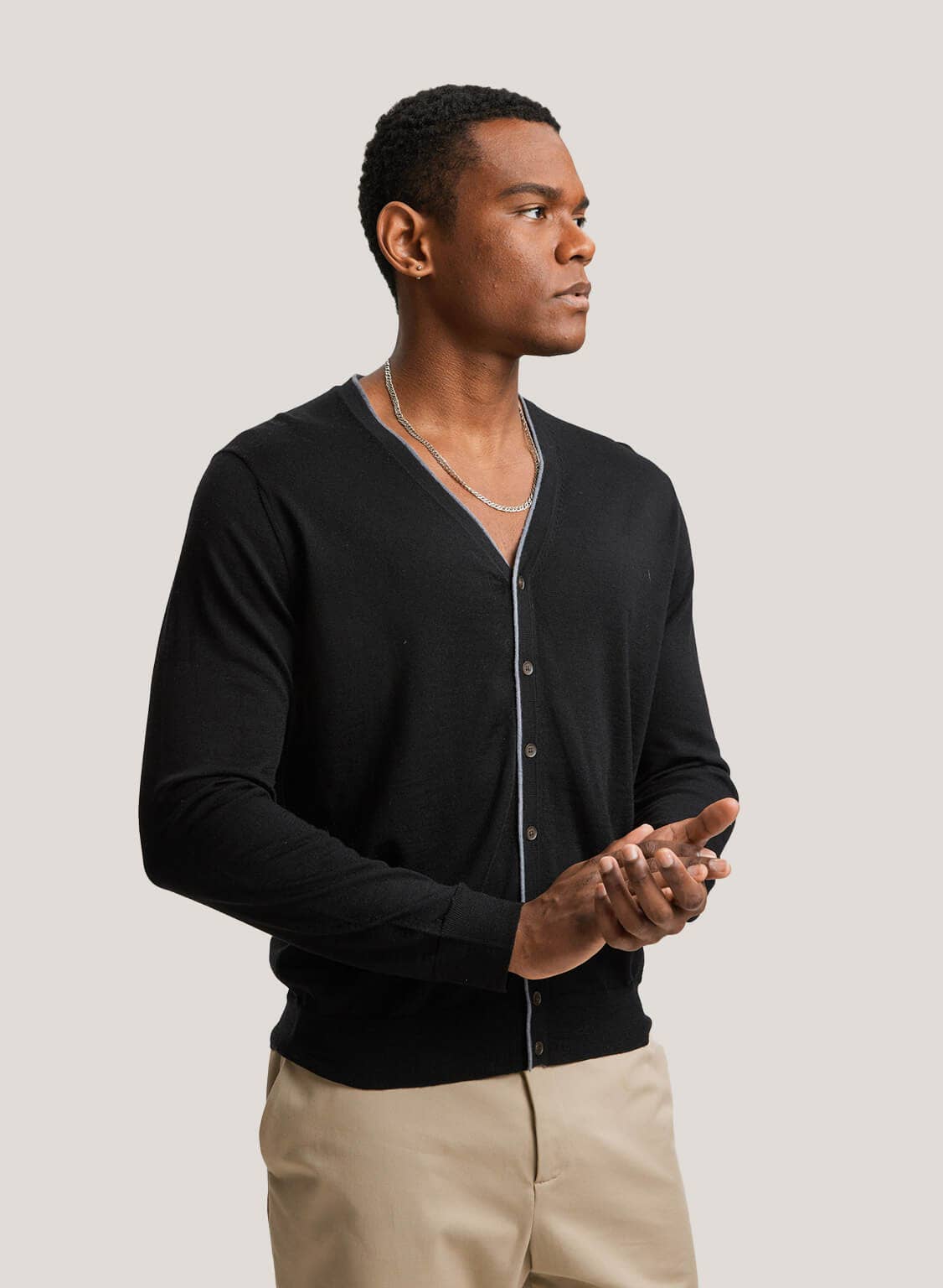 A smoldering sexy cardigan. It's crafted with a classic cardigan design featuring a striped accent, this top is the ultimate layering piece.