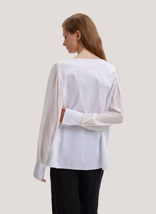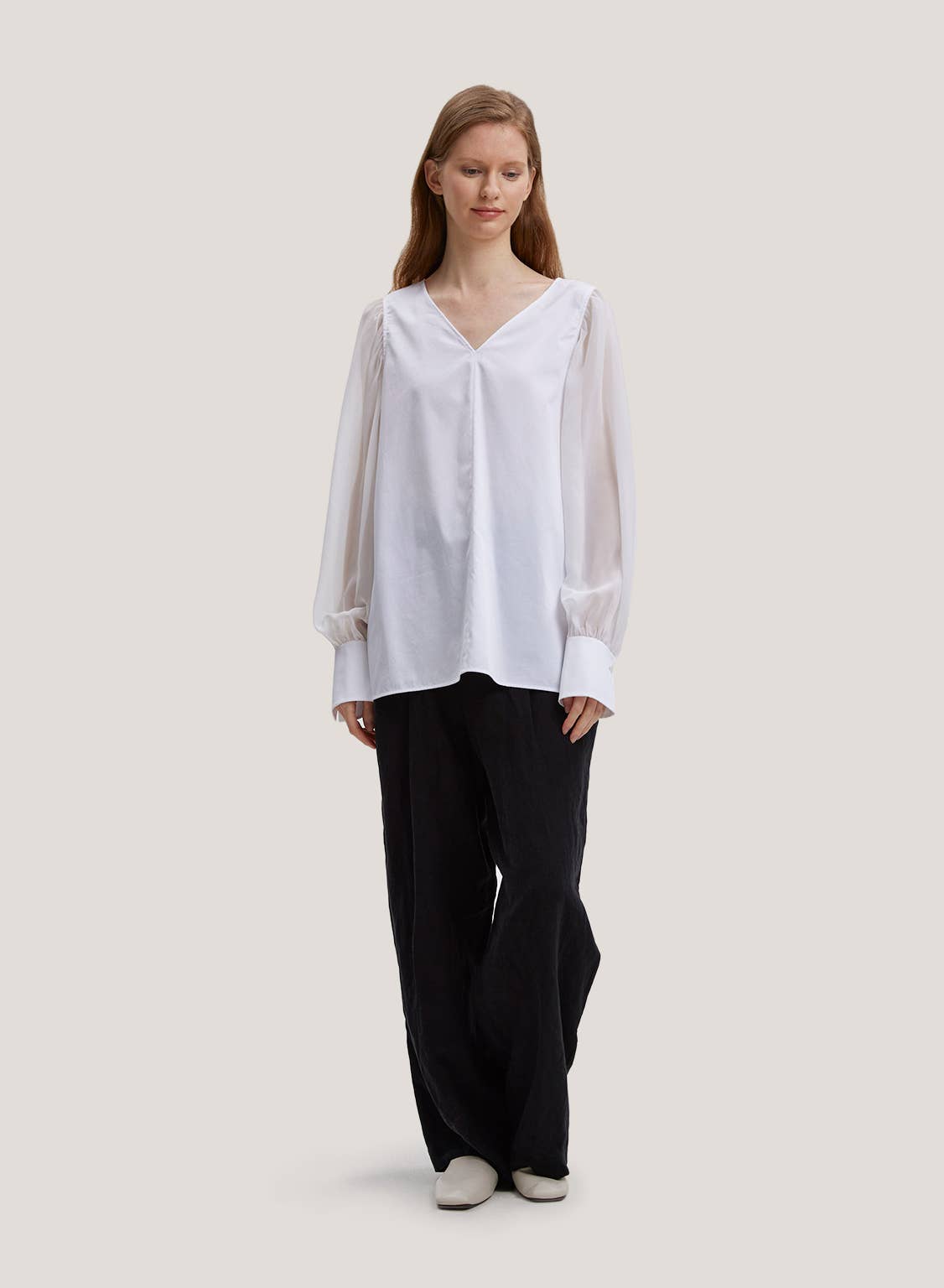 A top every working lady needs. This top crafted with lightweight cuffed sleeves and a v-neckline. This top is flattering on every body shape.