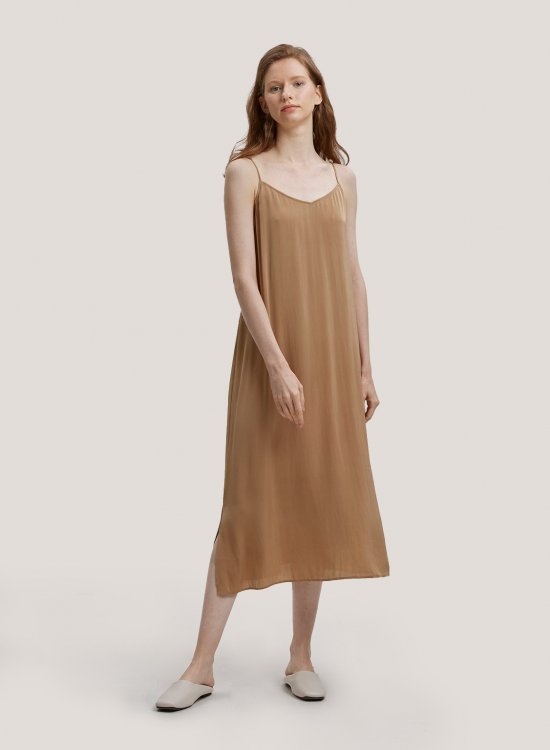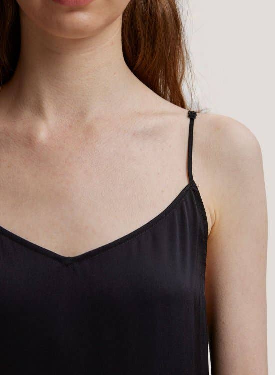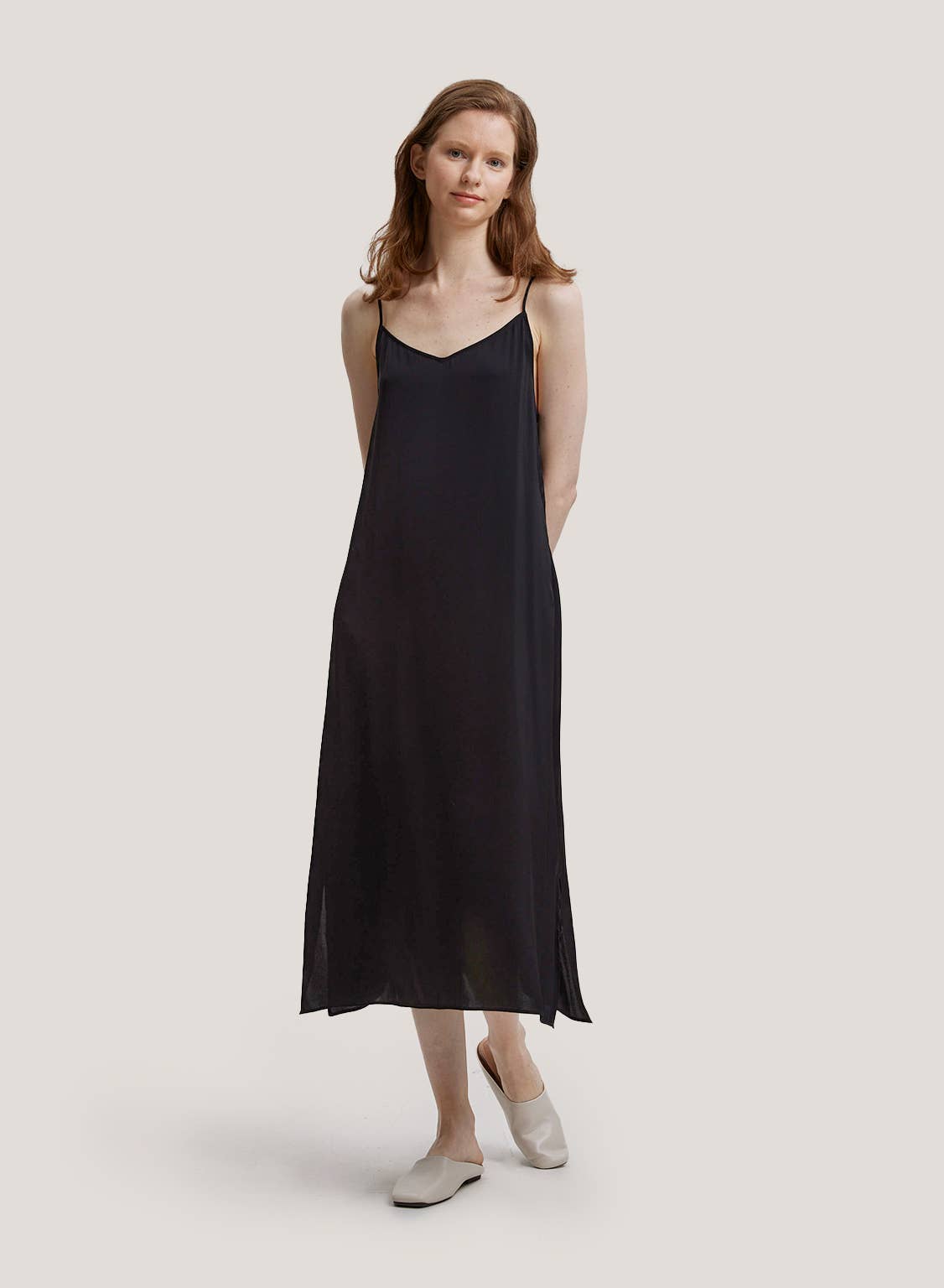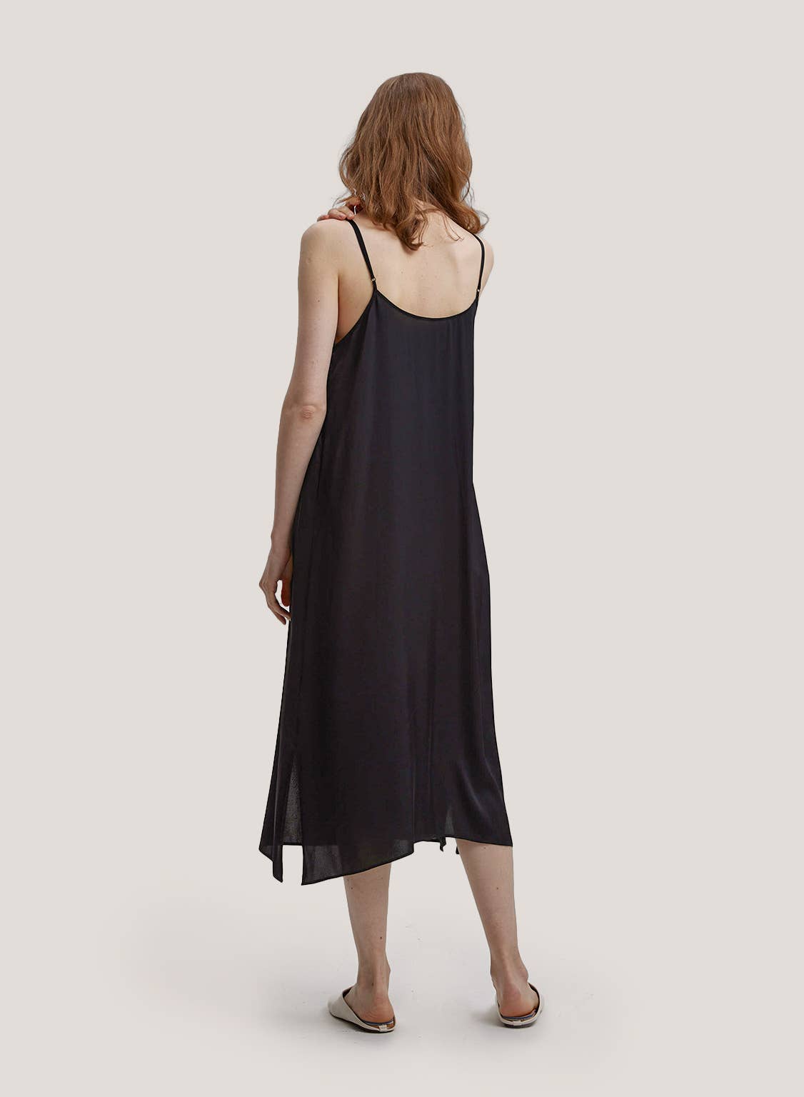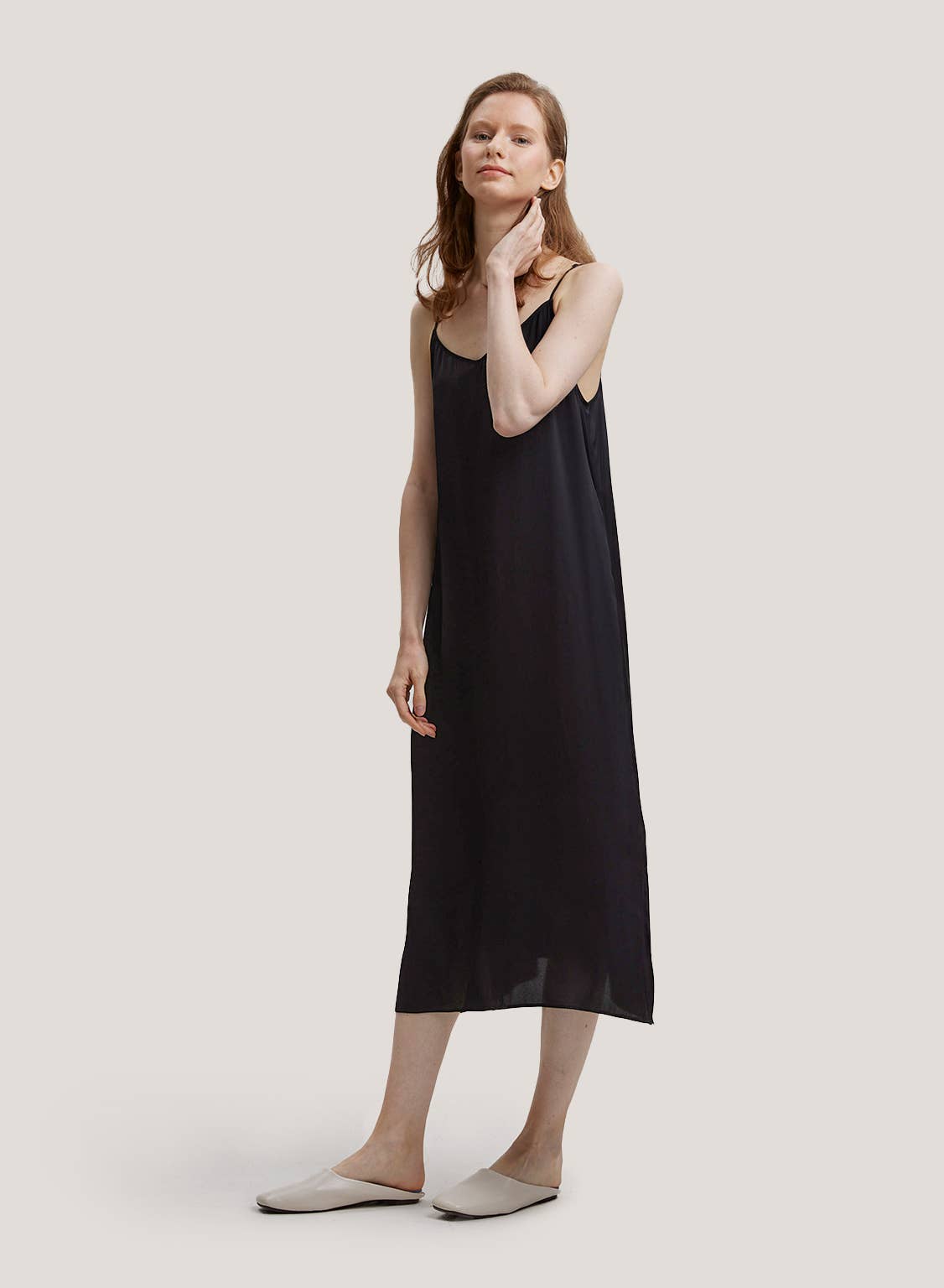 A sophisticated addition to your wardrobe. Featuring spaghetti straps and a longline silhouette, this dresses layers perfectly on a t-shirt or long sleeve top.