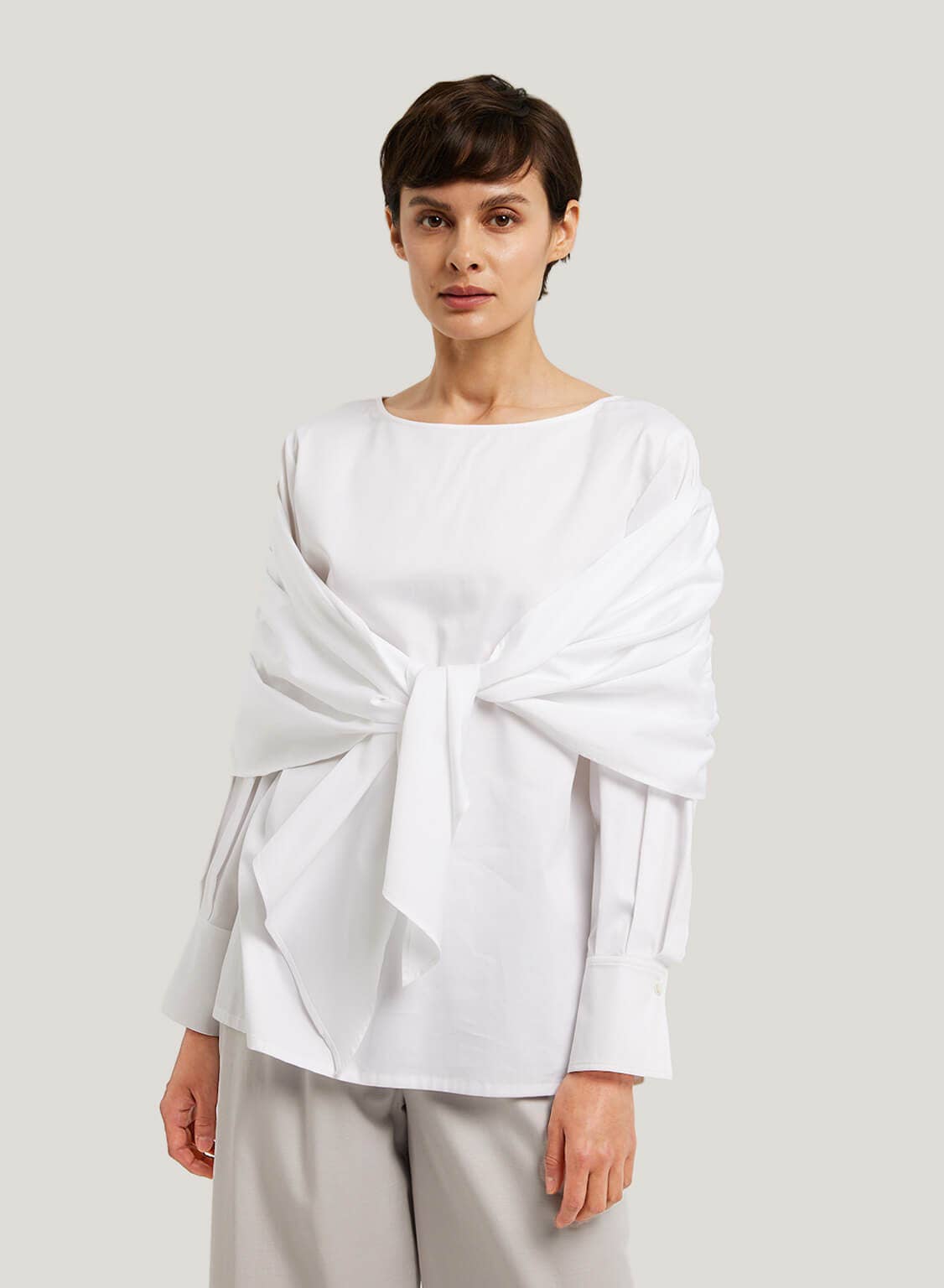 Tied up or left loose, this top has some serious fashion game. Crafted with a self-tying front that can be left undone, this versatile piece is crazy cool.