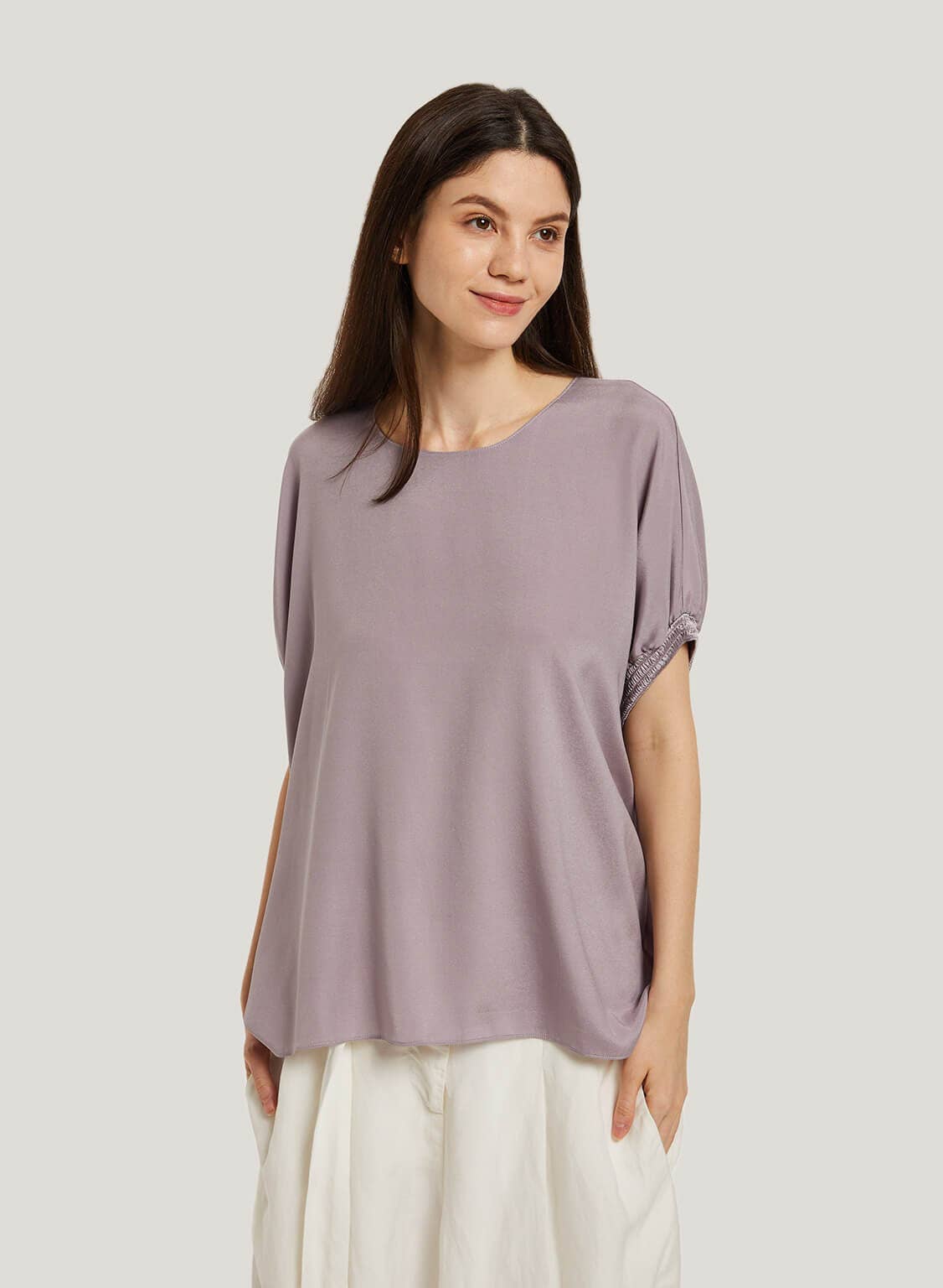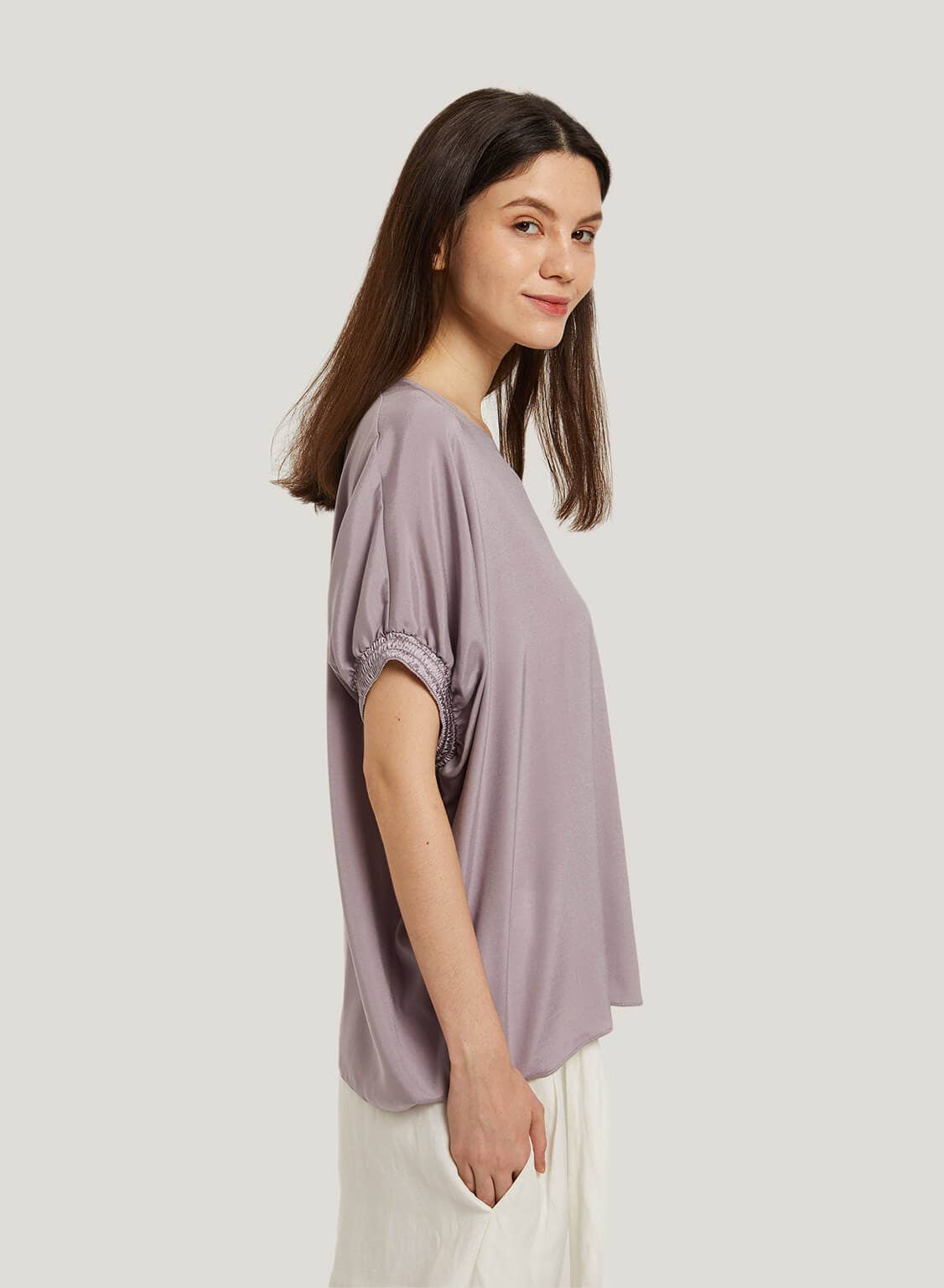 An enhanced classic t-shirt. Crafted with beautifully cinched sleeves with silk detail, this t-shirt is exquisitely gorgeous.