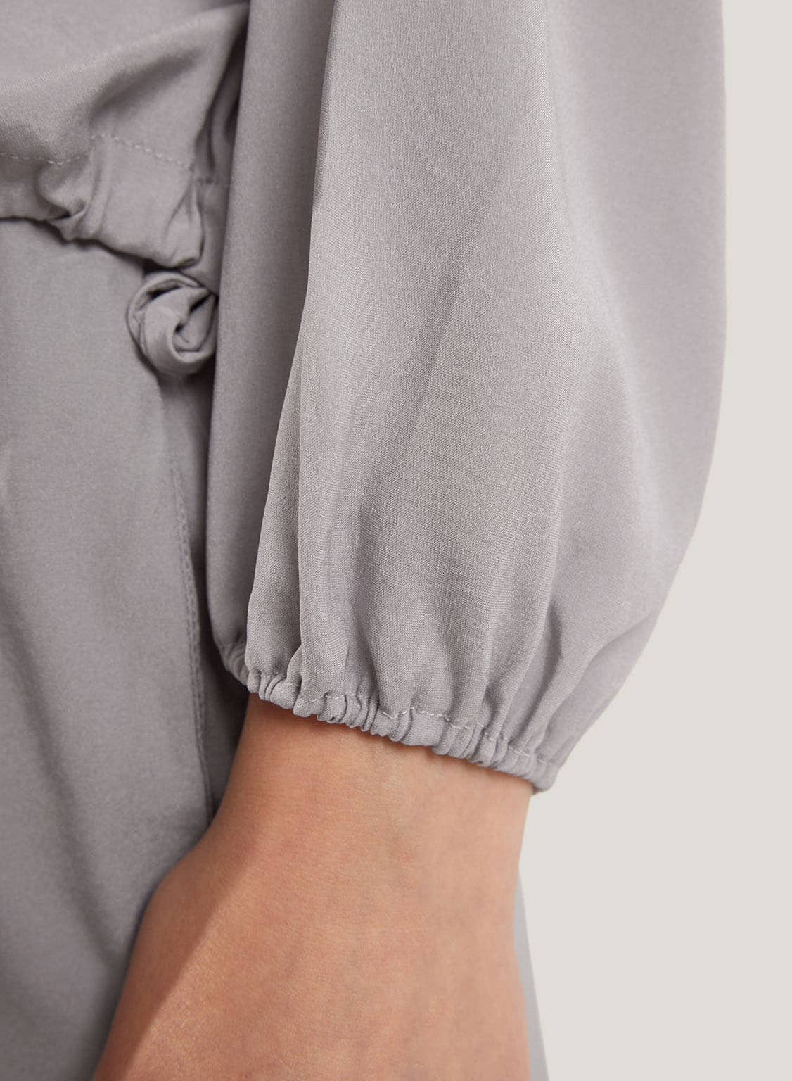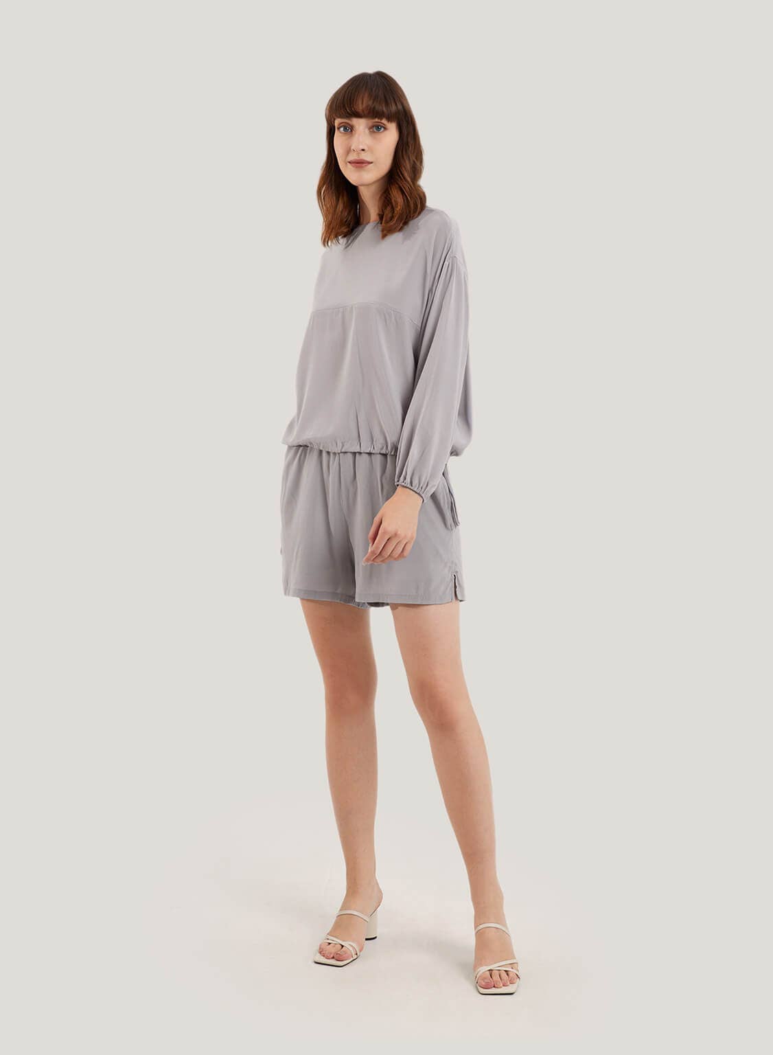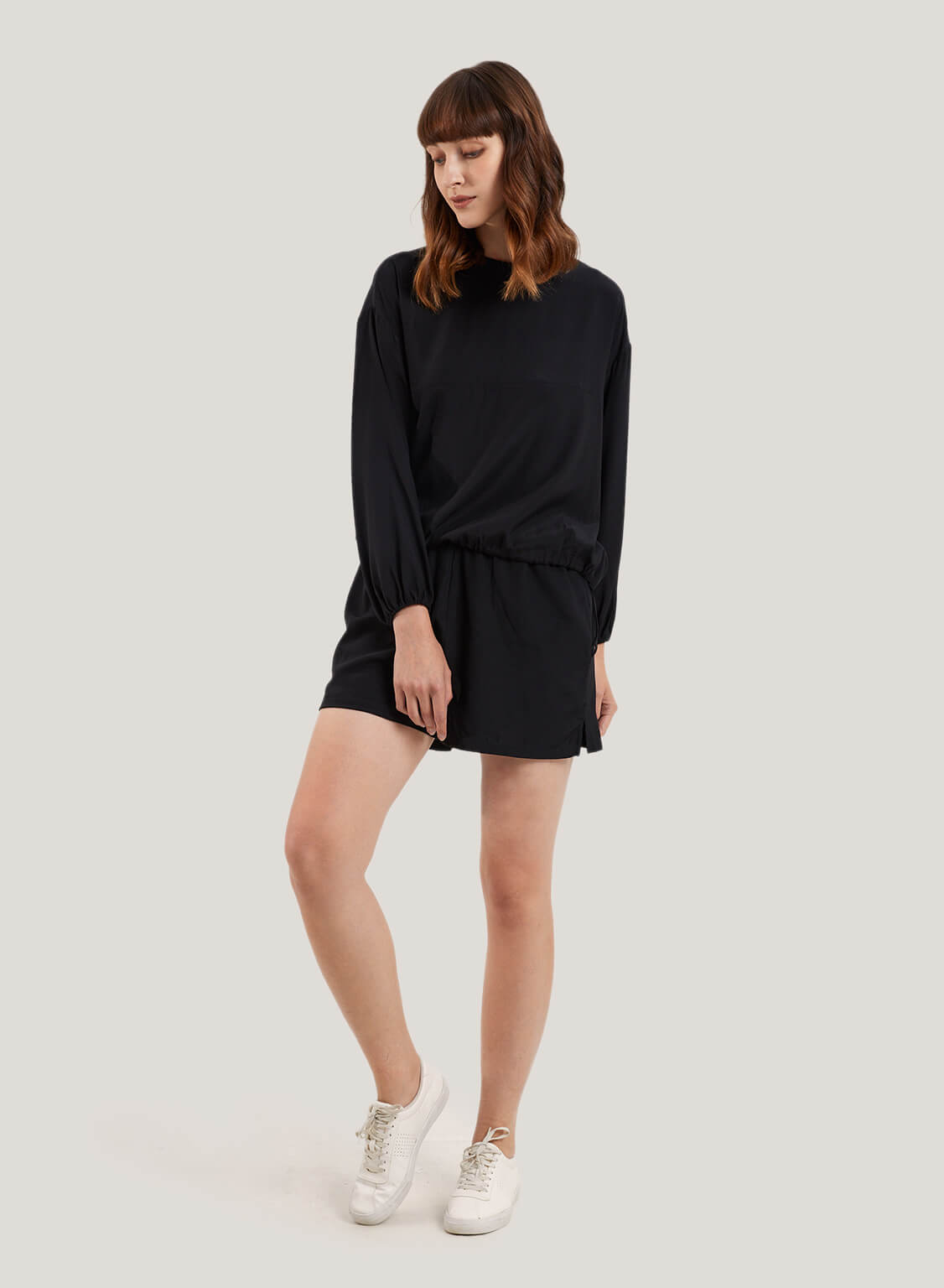 A versatile long sleeve top set that works for work or casual wear. Featuring a crew neckline and elastic hem, pair this top with a pair of matching shorts.