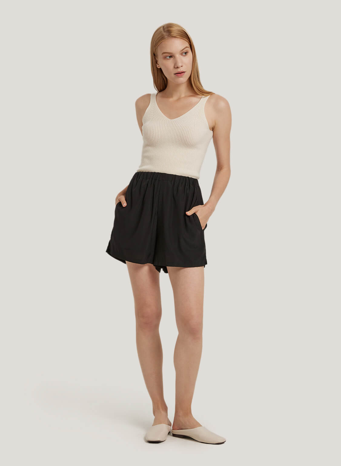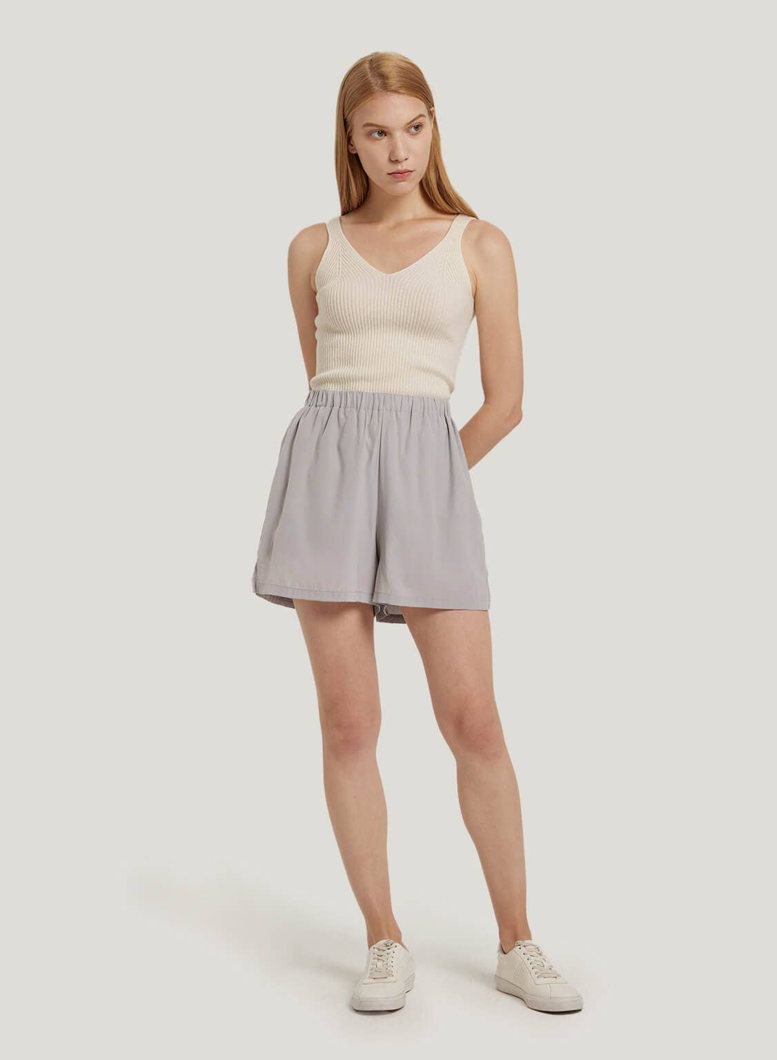 Elasticated-Waist Silk Shorts