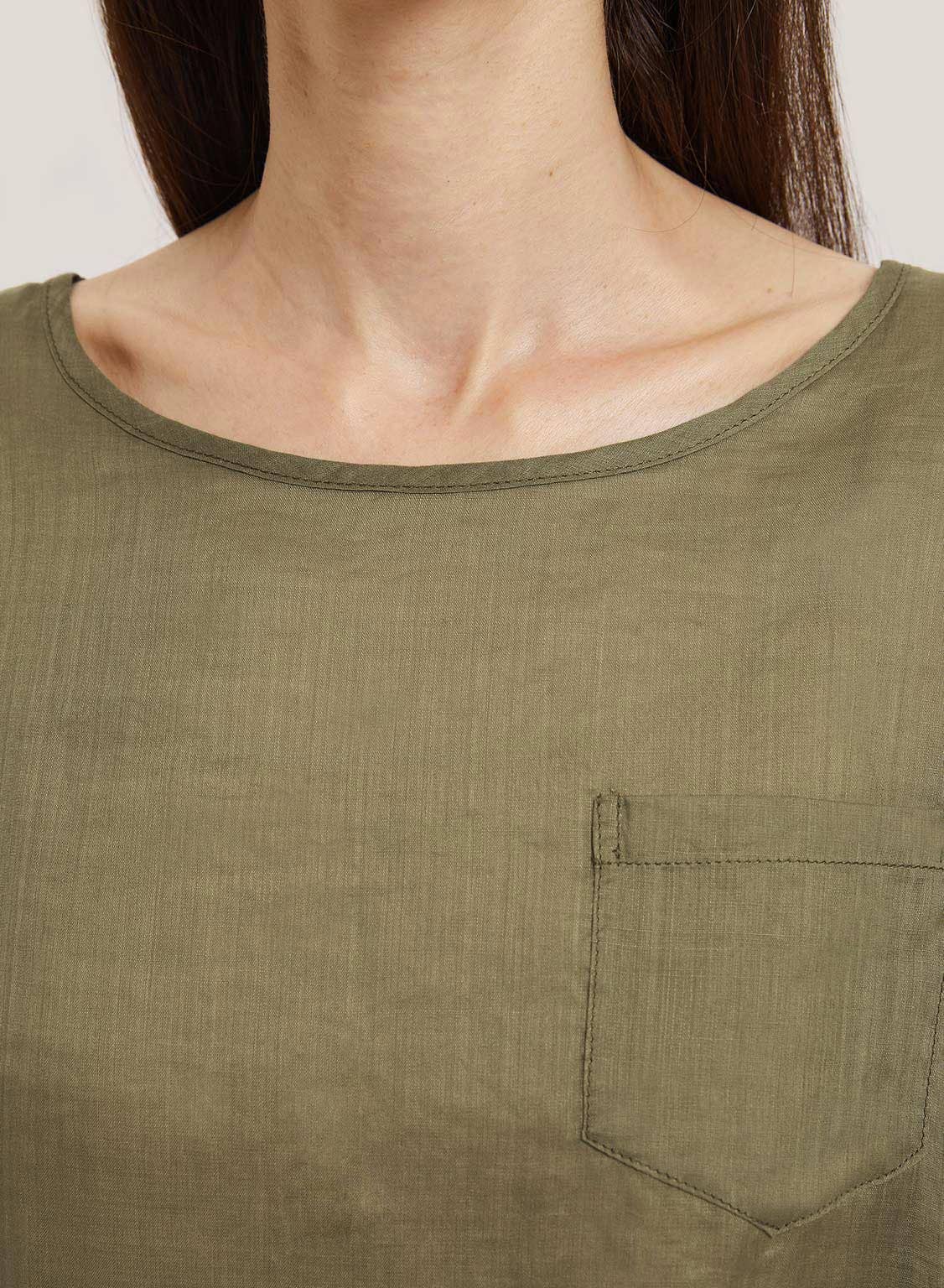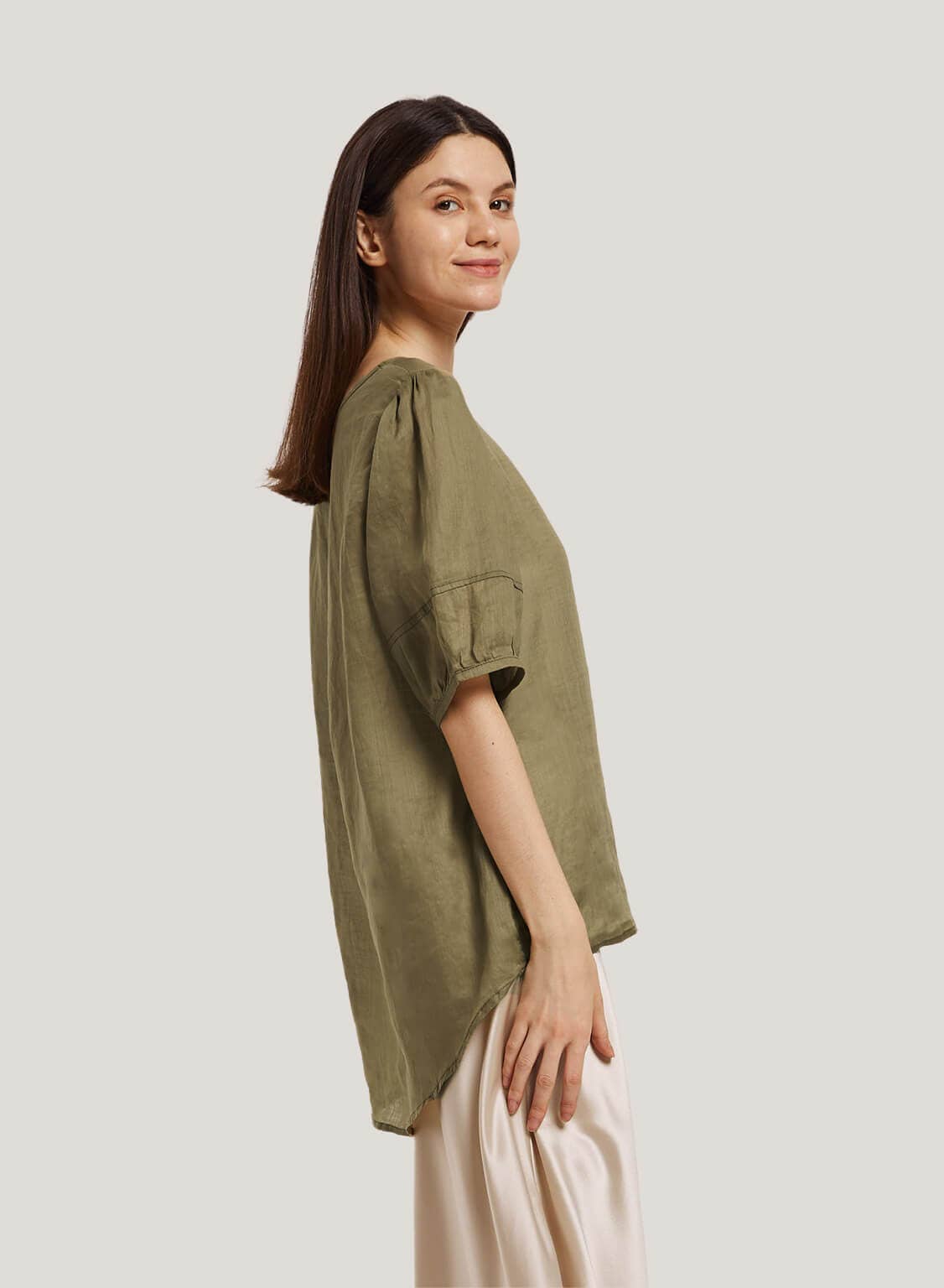 Ultra-lightweight and chic. This shirt is an easy, breezy addition to your closet in featuring puff sleeves and a front pocket.