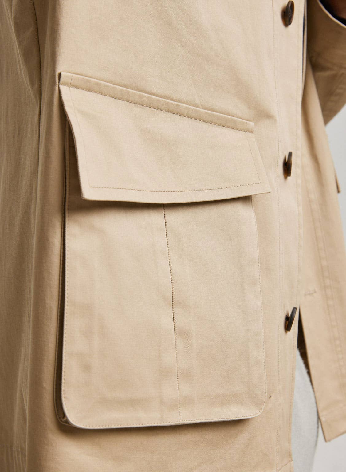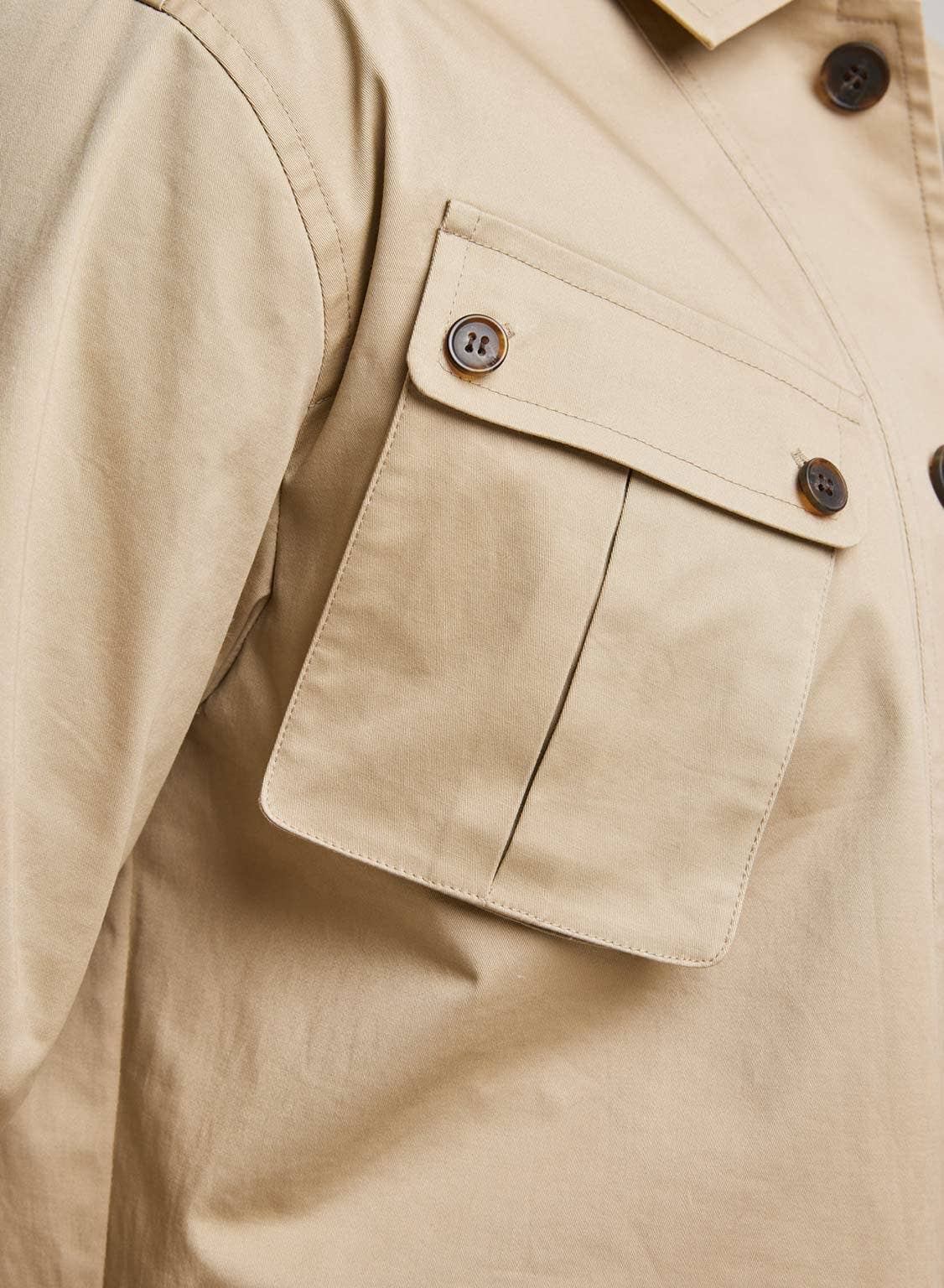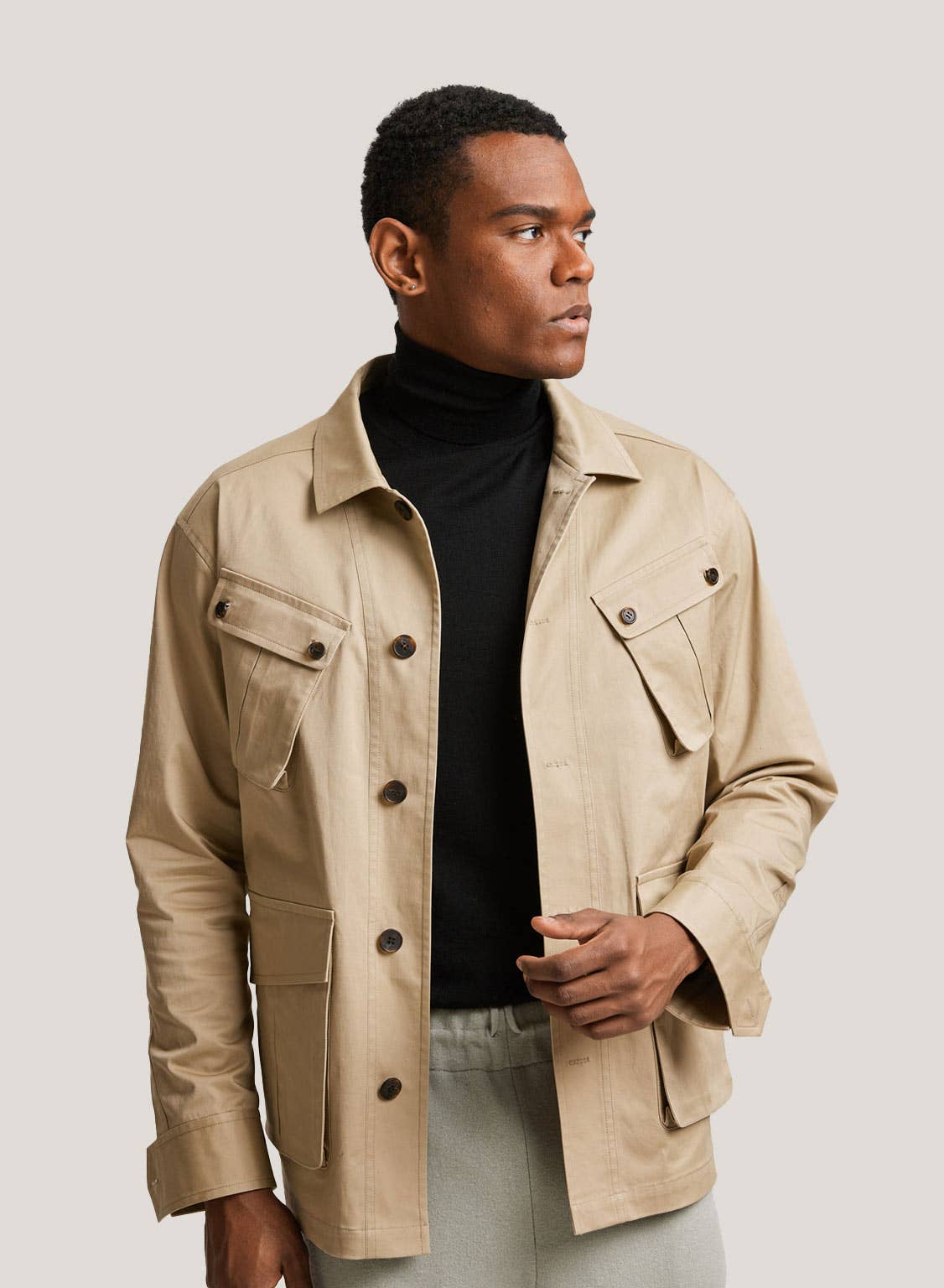 A jacket that travels well. Featuring four large front pockets, this jacket is perfect for your next vacation! Throw on top of a light sweater and joggers for a chic traveling look.
