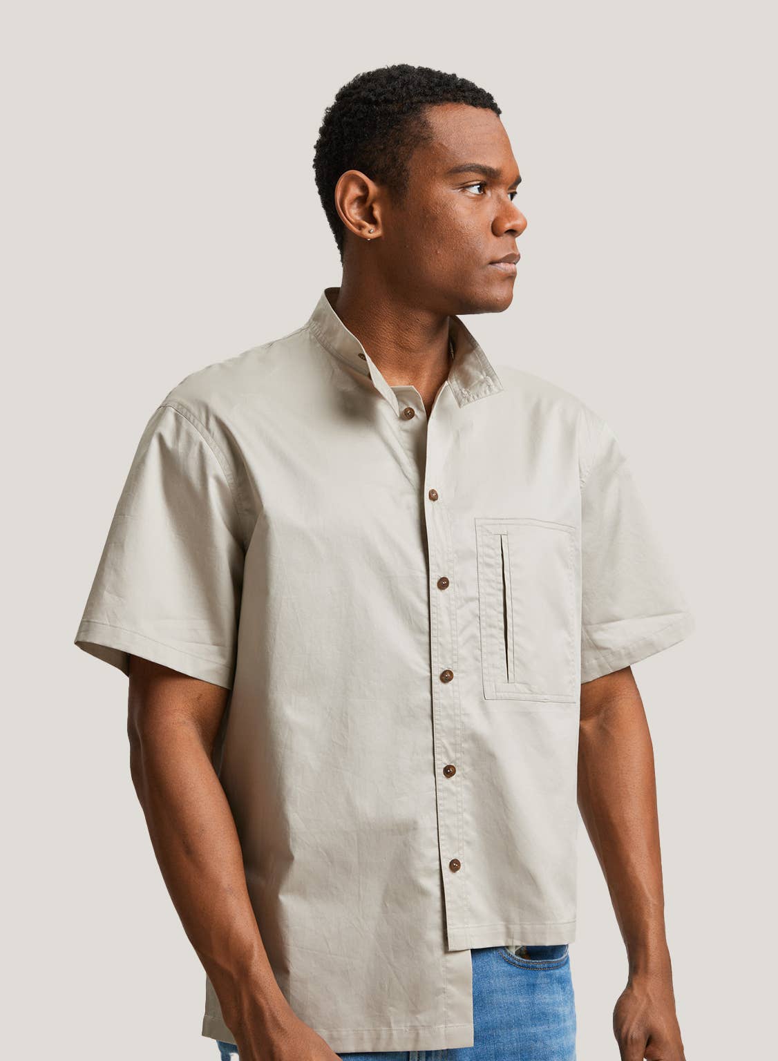 Single Pocket Asymmetric Shirt In 100% Cotton