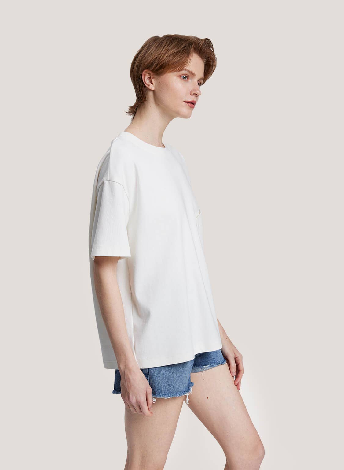 This shortsleeve cotton T-shirt design with raglan short sleeves and a slanted front pocket. This t-shirt looks good every day of the week.