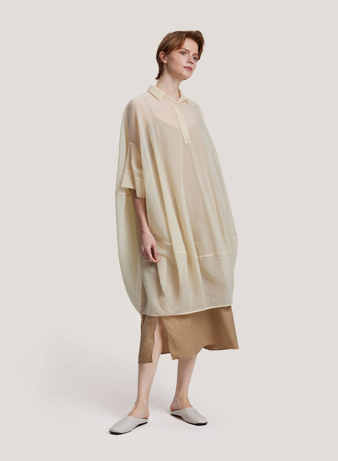 A classic silhouette. This shirt featuring lightweight material and an oversized fit for a romantic look. Pair with a pair of leggings for an effortless outfit.
