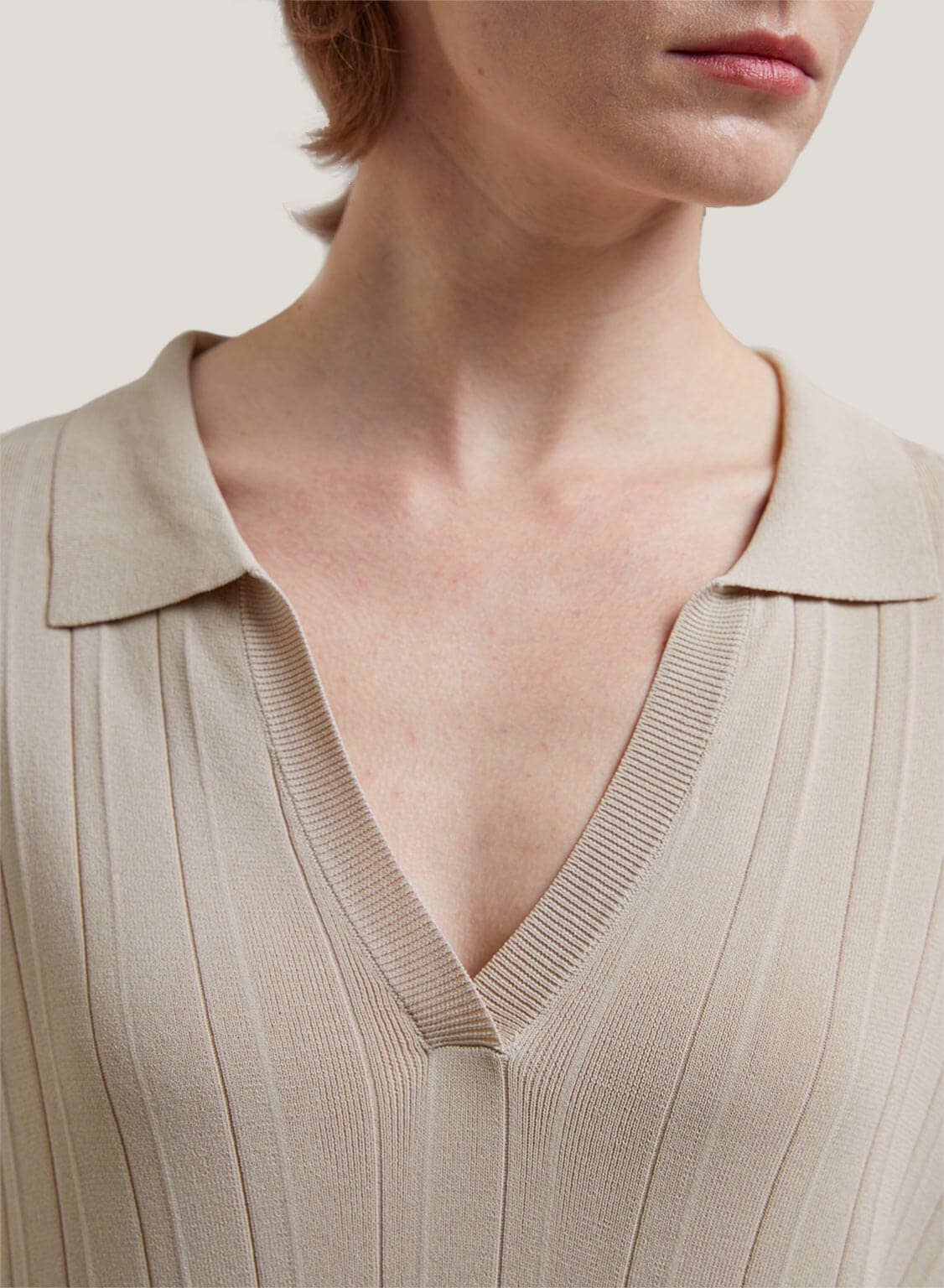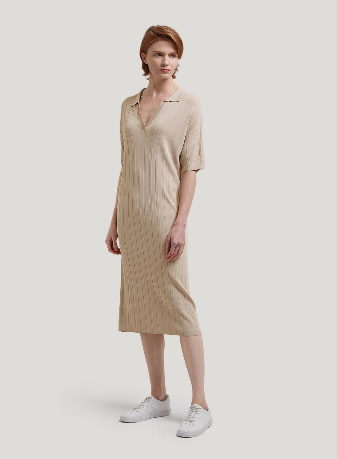 With a delicately ribbed design and dropped shoulders, and this dress's beauty is in the details. And featuring a longline silhouette and seamless polo neckline, and this dress is beautiful on its own or layer under a crewneck sweater.