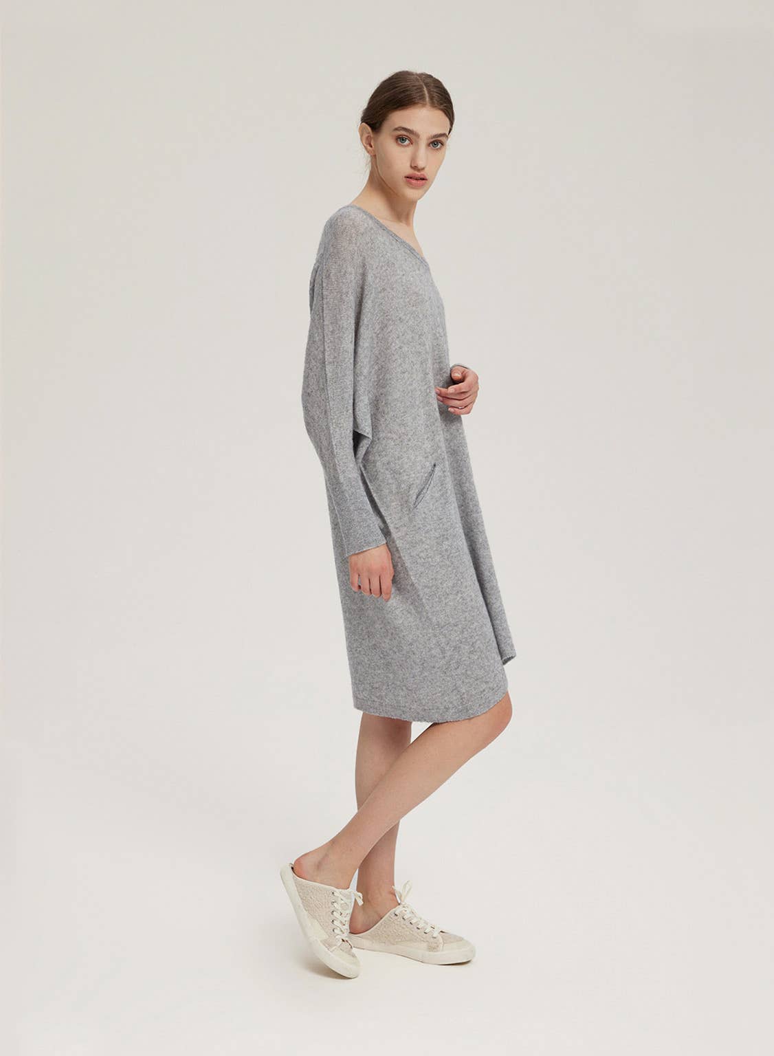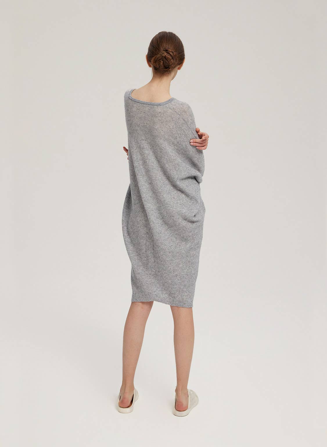 This thin, flowing v-neck dress screams freedom, with its oversized tailoring and baggy bottom hem. It can be homey sleepwear for some and a bold going-out dress for others.