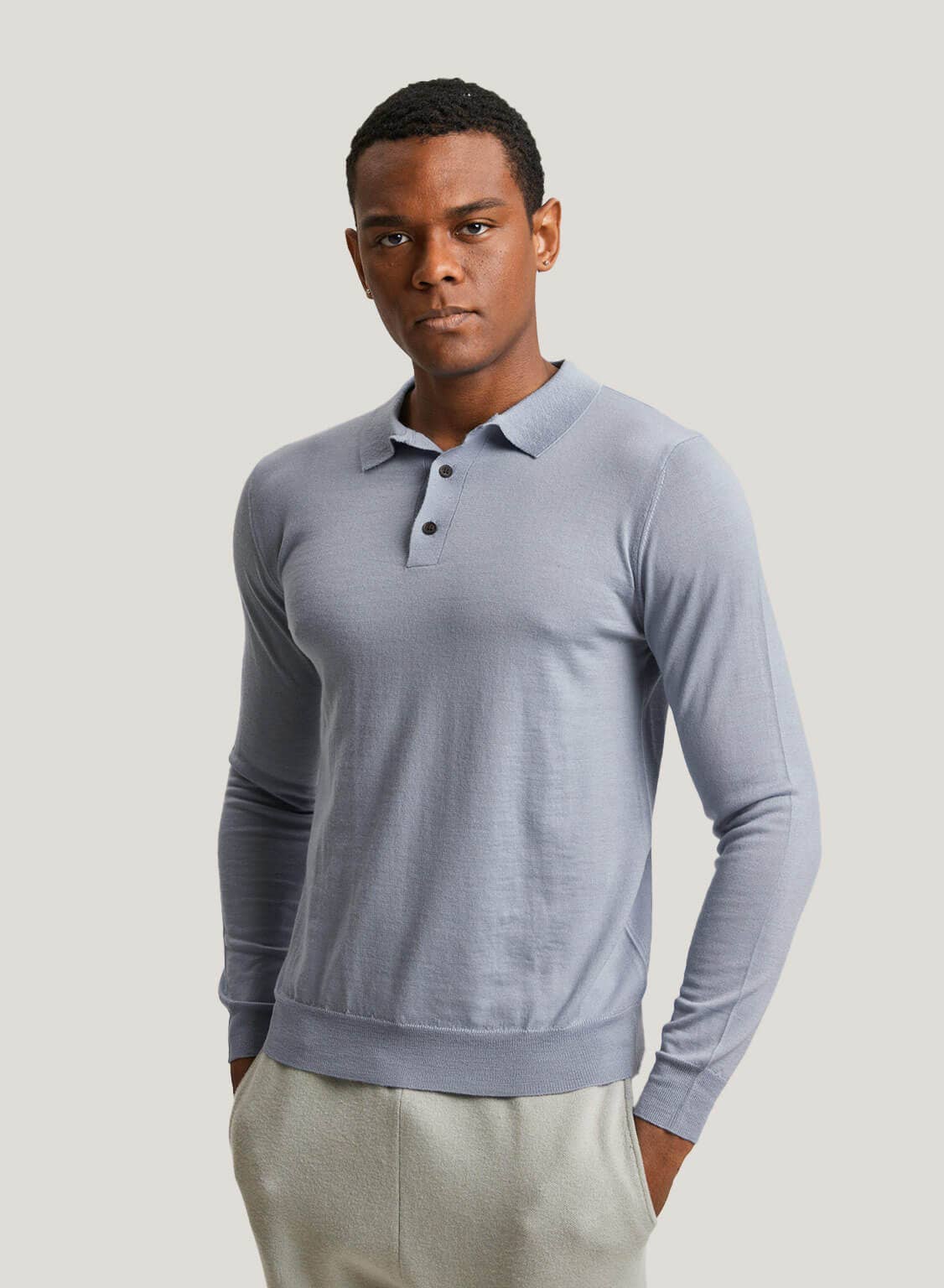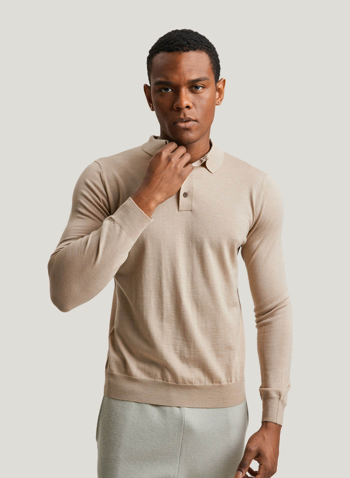 A shirt you will want to wear to work. Featuring raglan long sleeves and a polo neckline, this polo shirt layers well under a crewneck sweater.