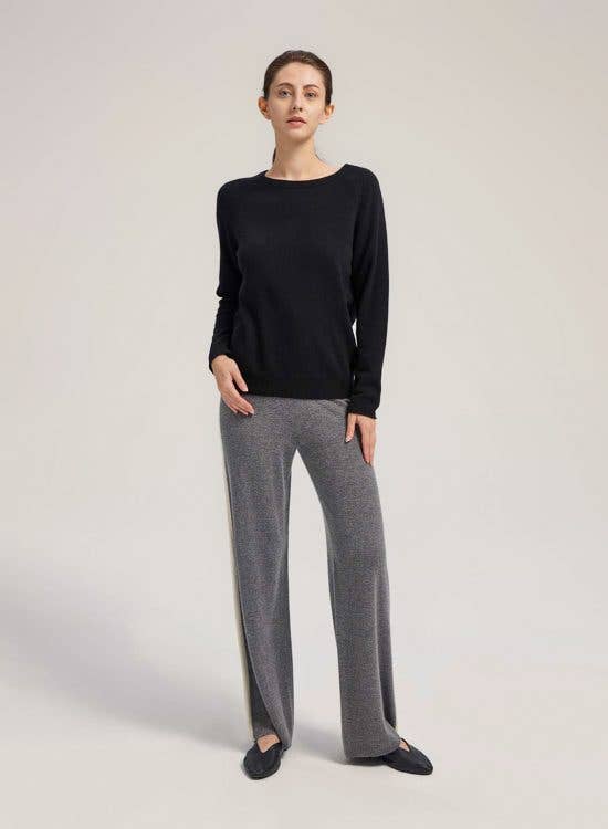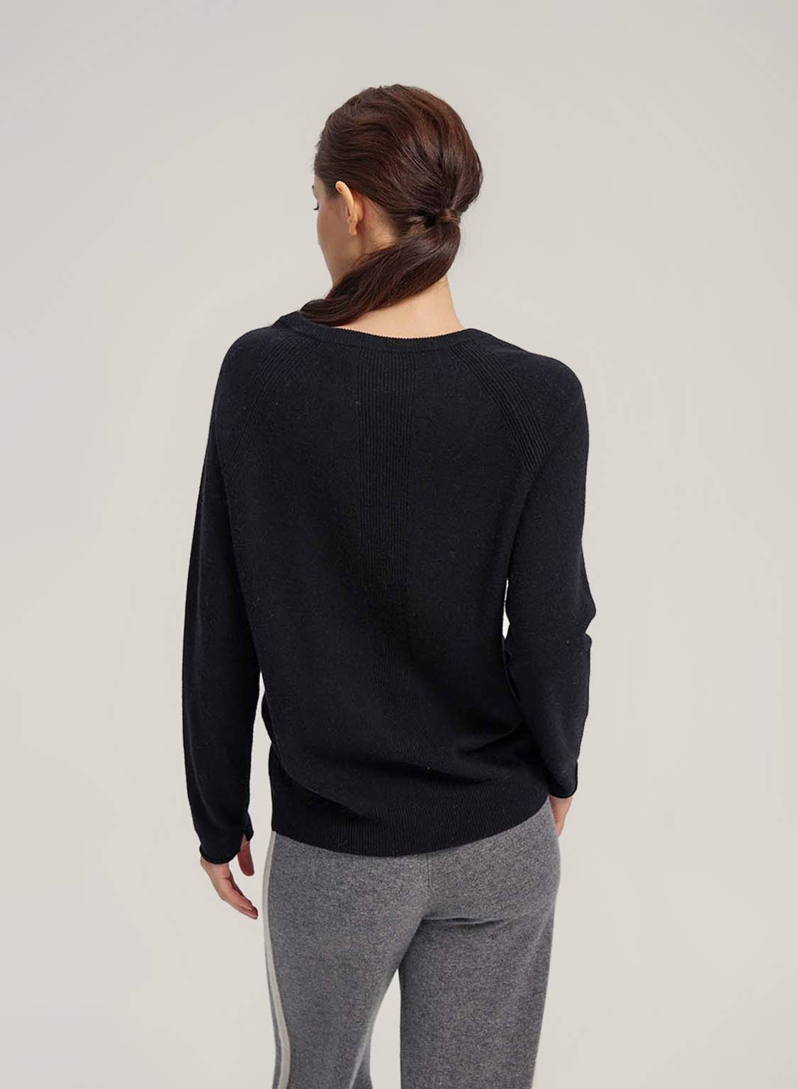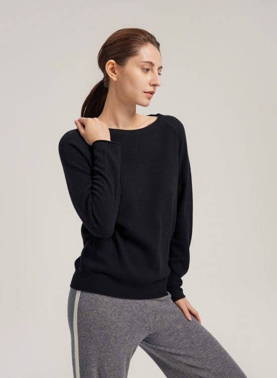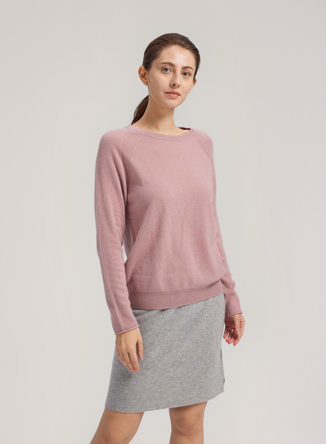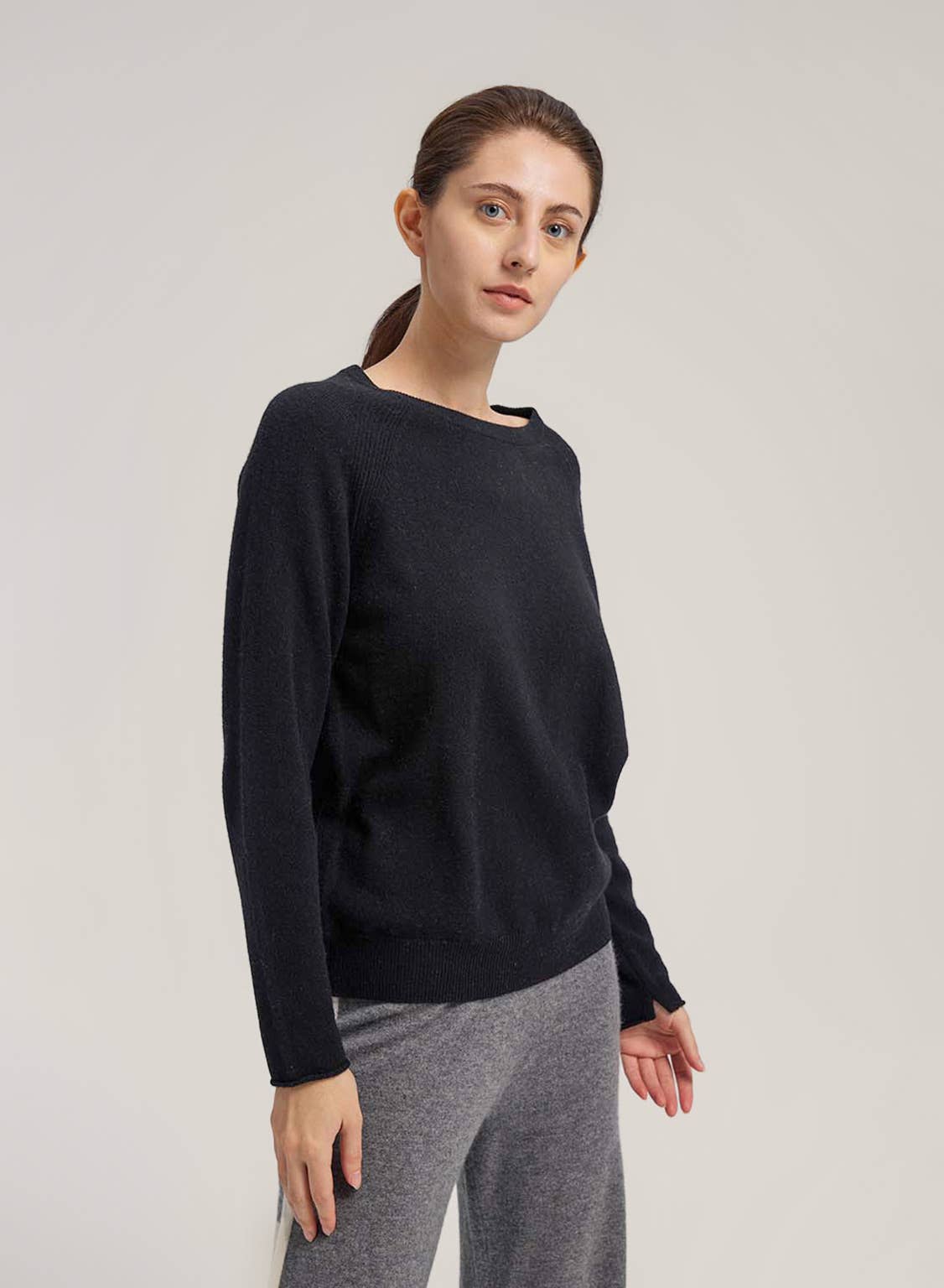 The design of this round neck sweater combines loose cut and delightful details. The curling cuffs make it elegant and casual.
