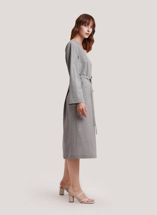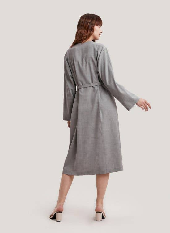 A full-length design for a regular fit, a long belted waist and have buttons on the front. Most notably, this mid-length style is beautifully cut from the tactile wool blend. It is tied at the waist and has an elegantly draped hem.- Normal Fit