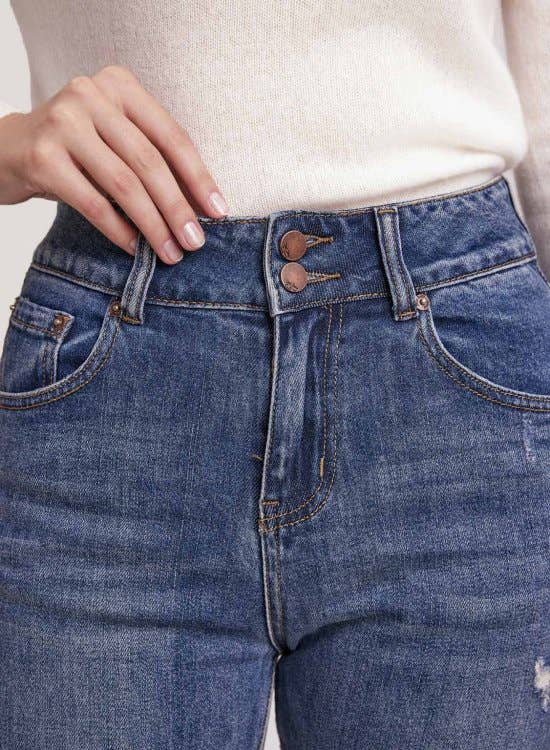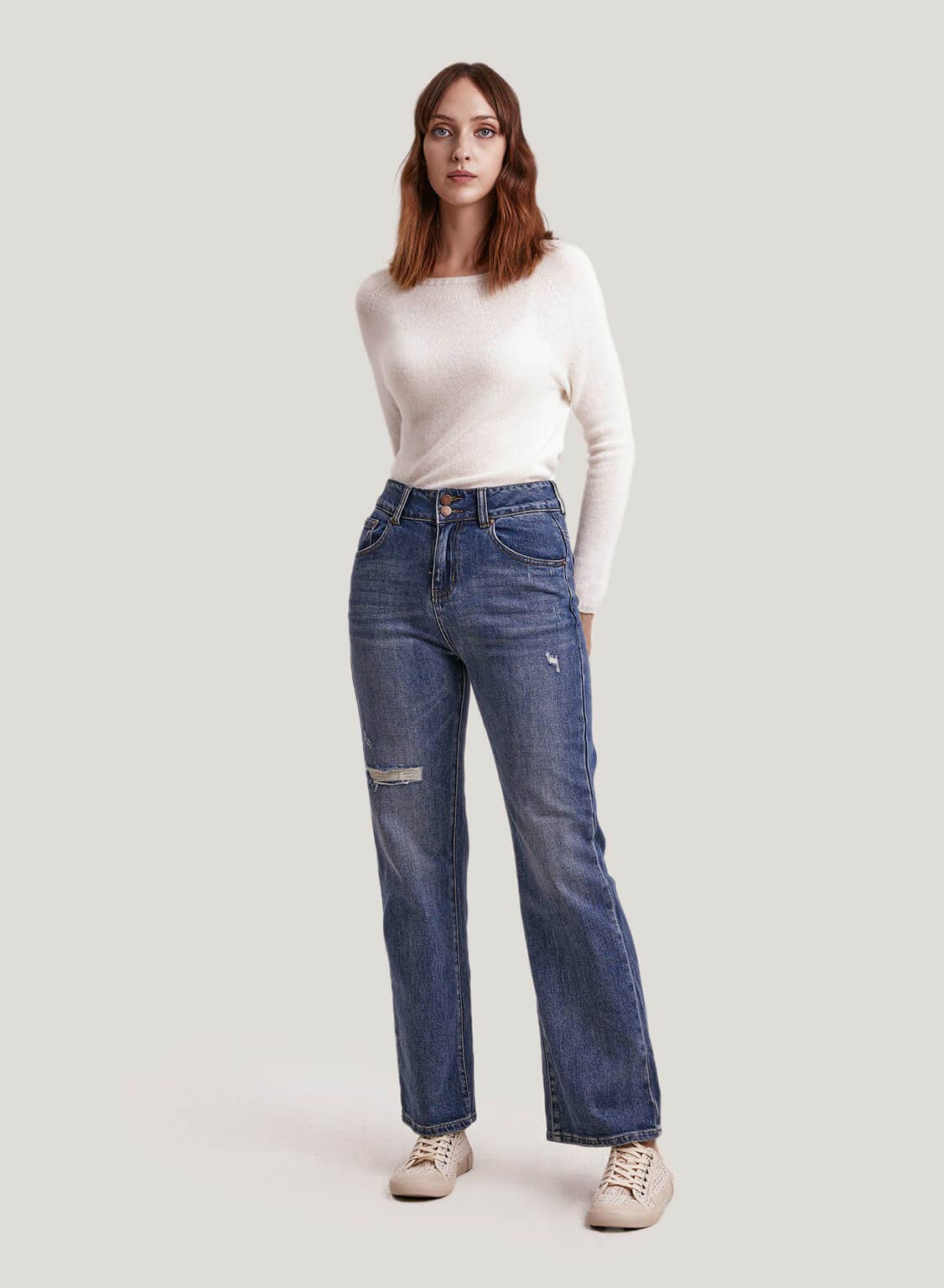 These stand-out pair of straight-leg jeans feature a casual fit and pleats in the front. That gives this pair the feel of a vintage favorite for a casual look.- High Waist