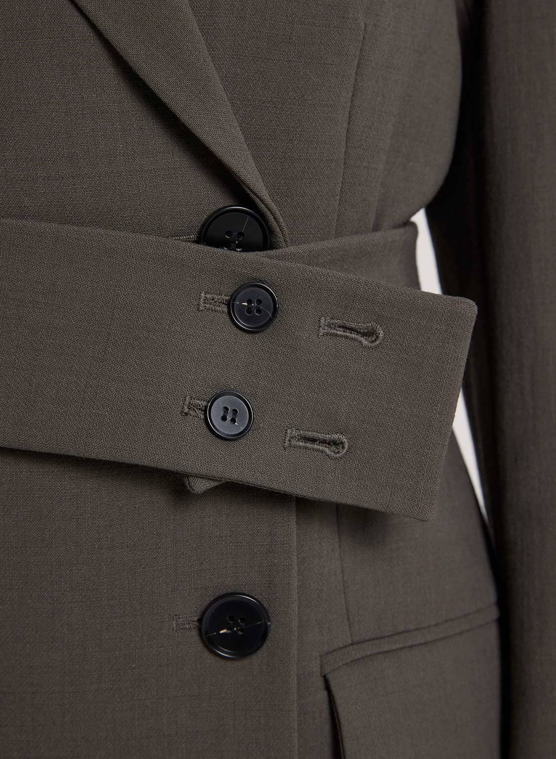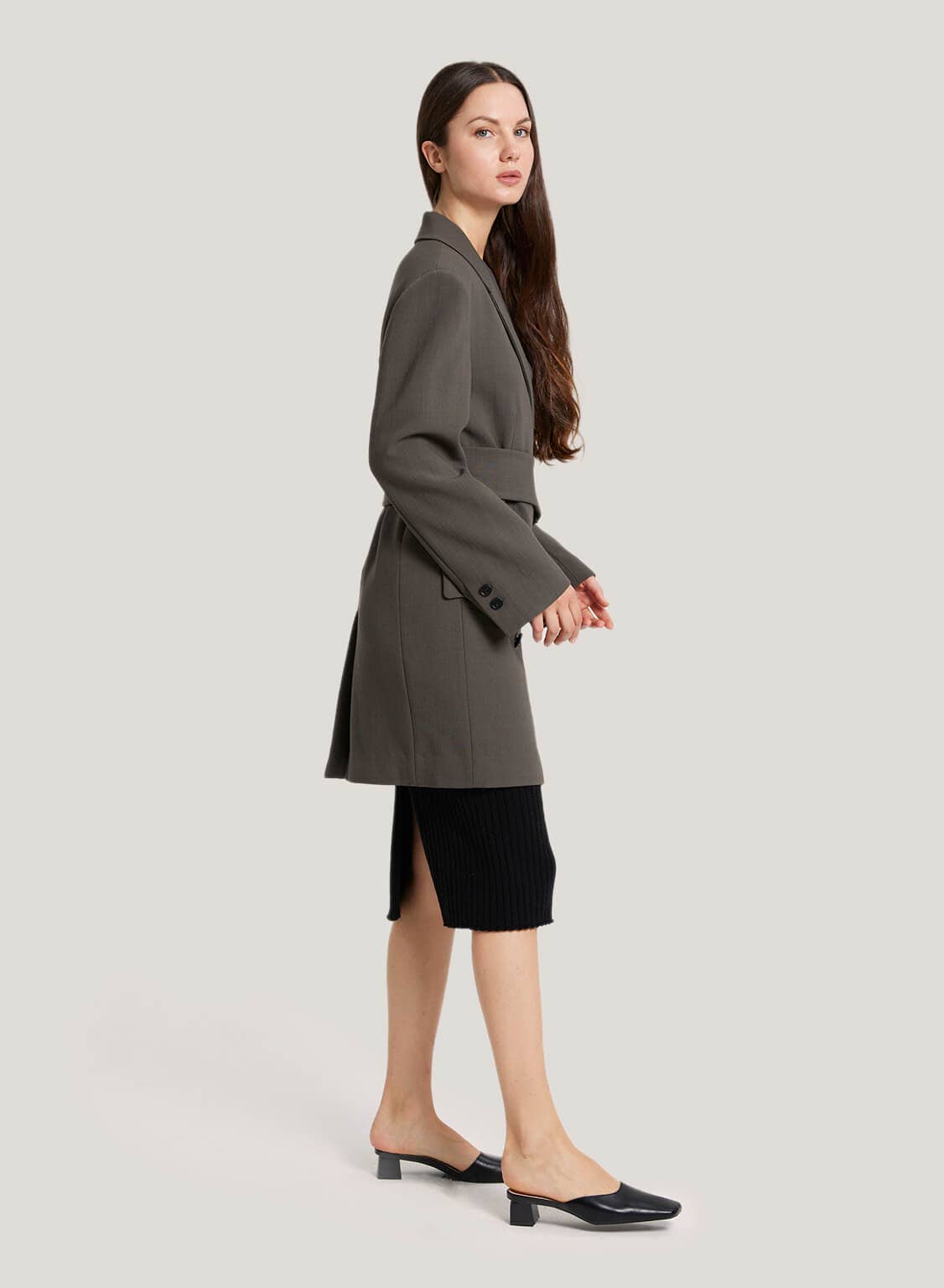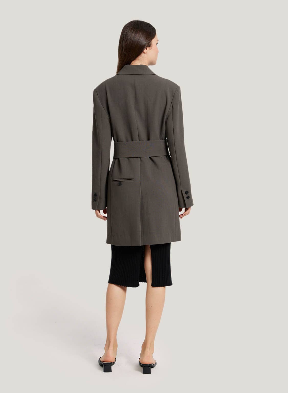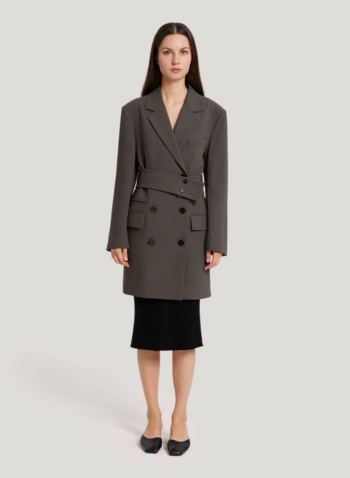 This tailored double-breasted coat in pure wool fabric features a notched lapel and a straight silhouette above the knee. Slip yours on over your favorite knitwear.