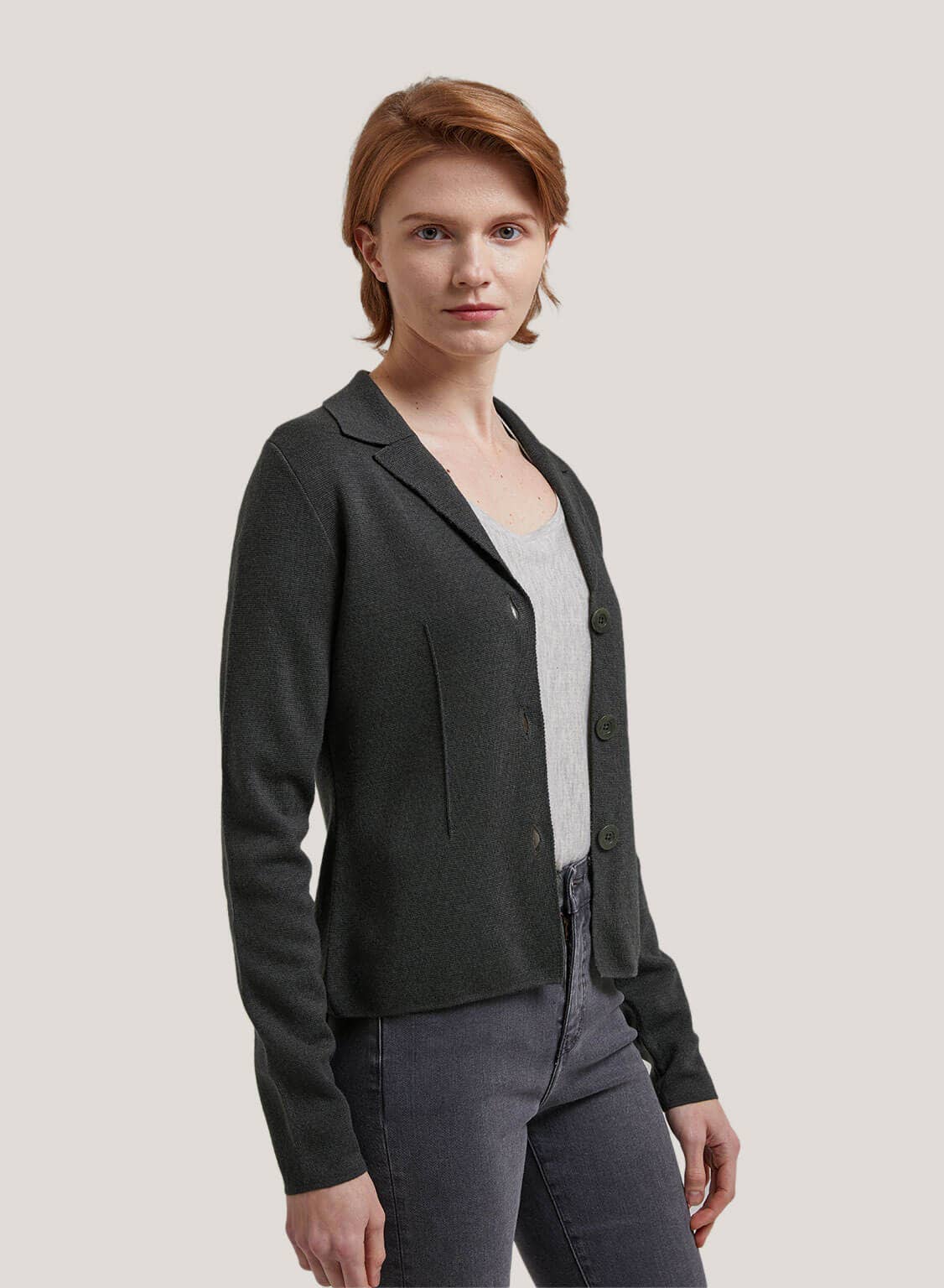 The chicness of the blazer with the comfort of a cardigan. This layering piece features three front buttons, a collared neckline, and a regular fit. - Normal Fit