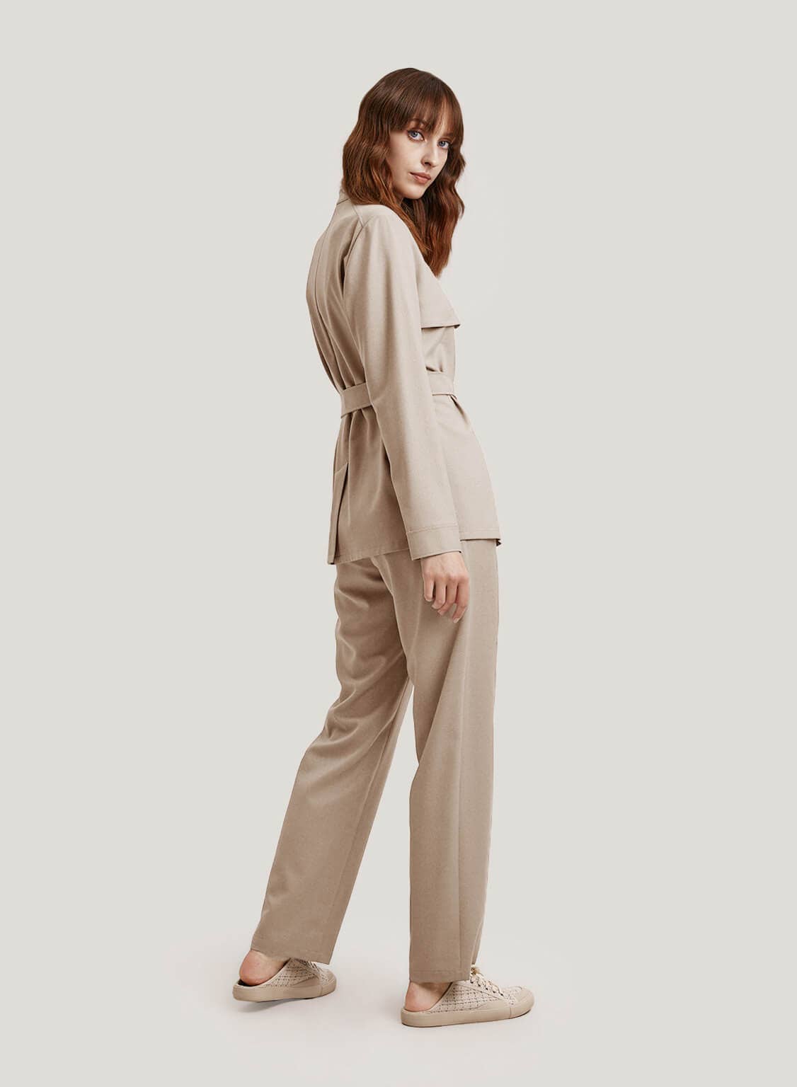 Wool-Blend Belted Jacket And Trousers Set