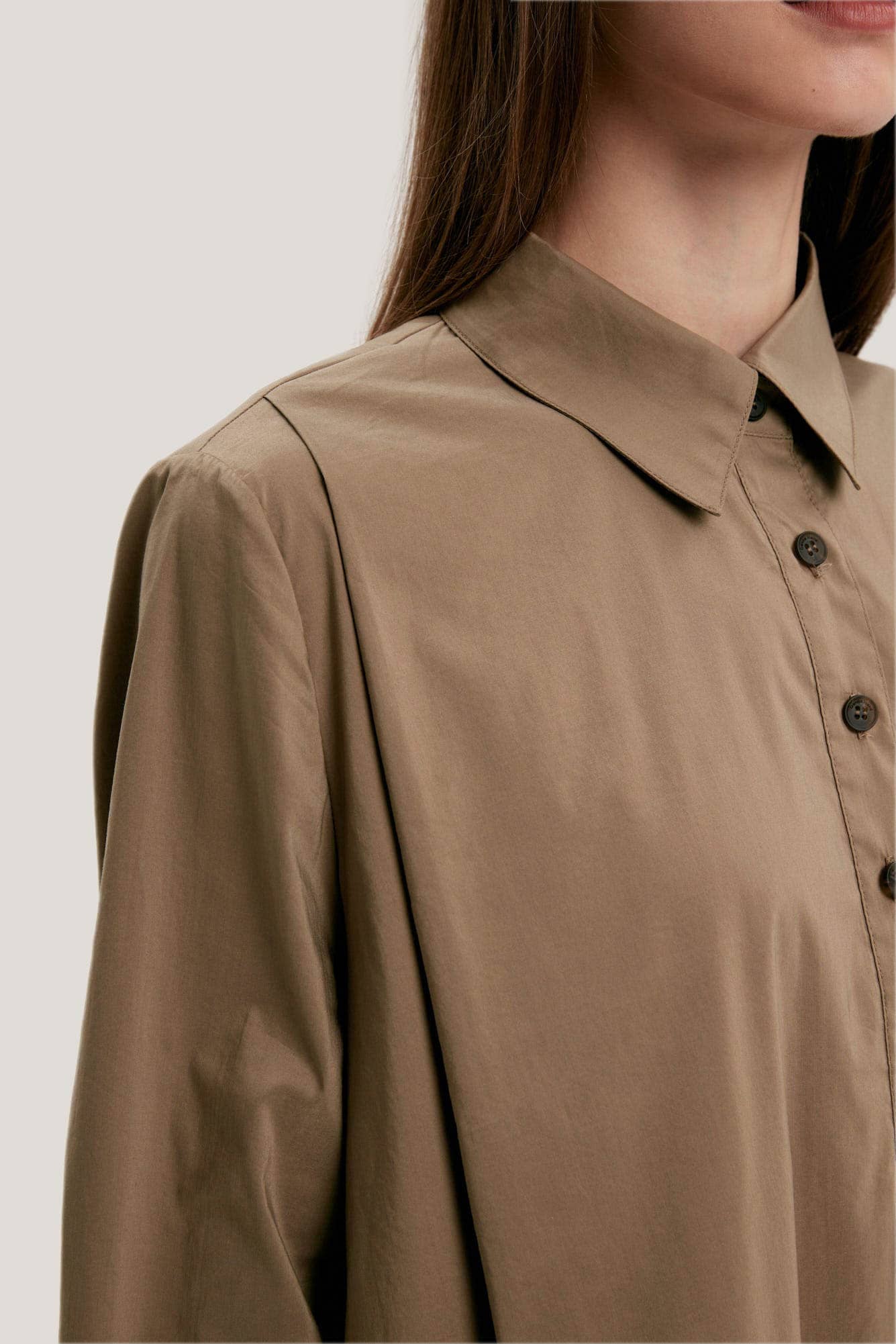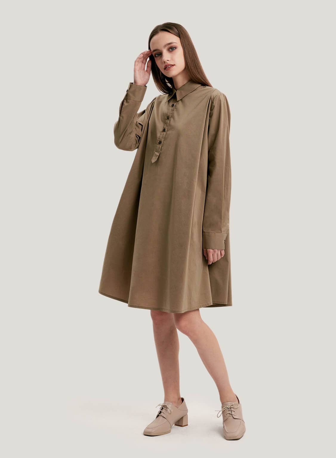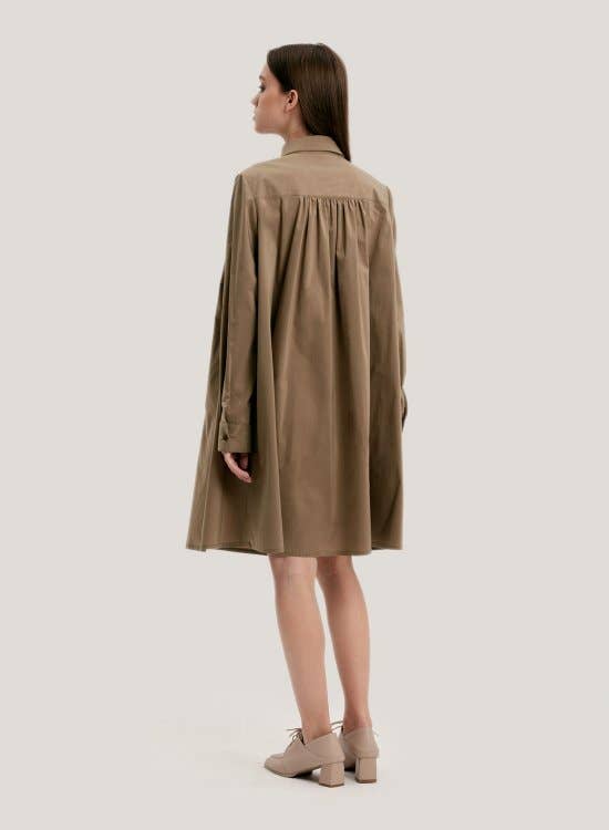 Design with the minimalist style of this A-line dress made from a cotton blend with shirt collar, sharp neckline, and full skirt. Timeless and versatile, this dress is essential for your wardrobe.