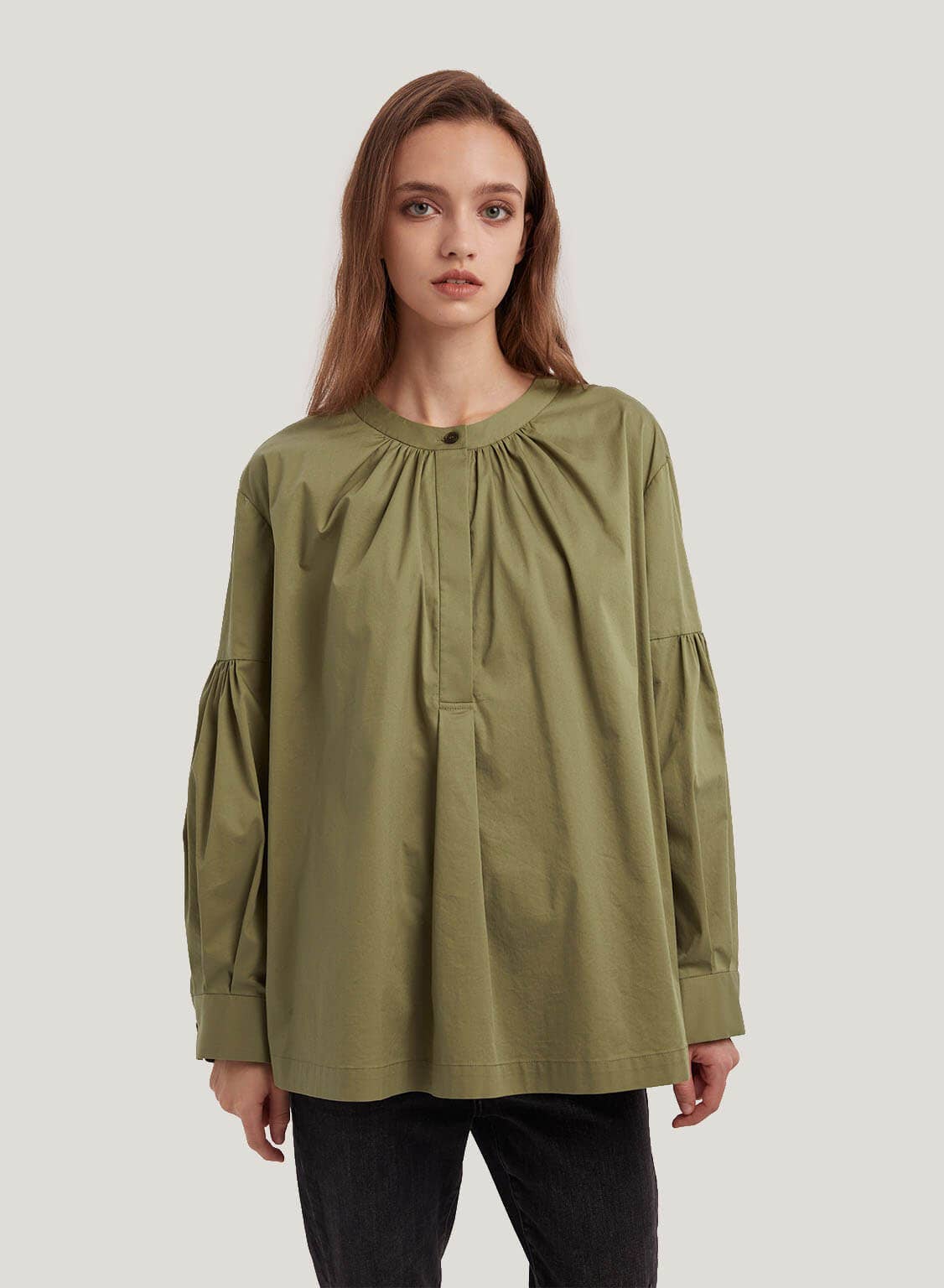 This structured blouse is made with cotton blend fabric and cut for a relaxed fit. The delicate blouse features ruffled shoulders and slightly puffed sleeves, as well as a straight fit through the bodice. - Loose Fit