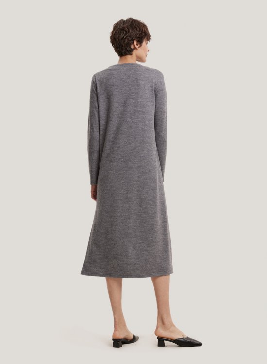 A maxi-style dress is tailored for a casual fit, accented by a boat collar and side-slit on the side. Wear it with backless loafers for a modern and elegant look.