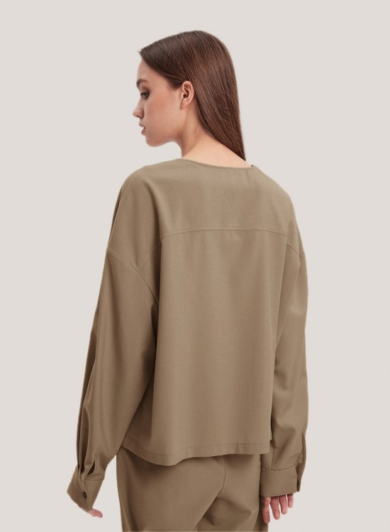 Invest in this high-quality top, an essential closet that surpasses trends and seasons. This blouse is gathered from neckline to hemline, creating smooth pleats that drape elegantly on the front. It is made from the lightweight wool blend and has voluminous sleeves and buttoned cuffs.