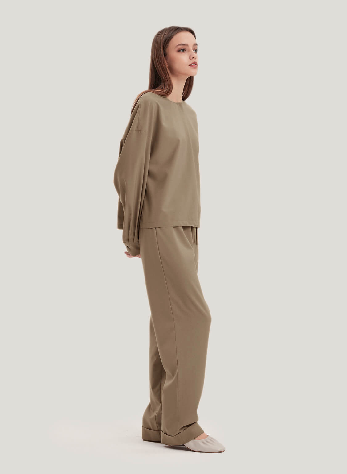 Wool-Blend Blouse And Pants Set